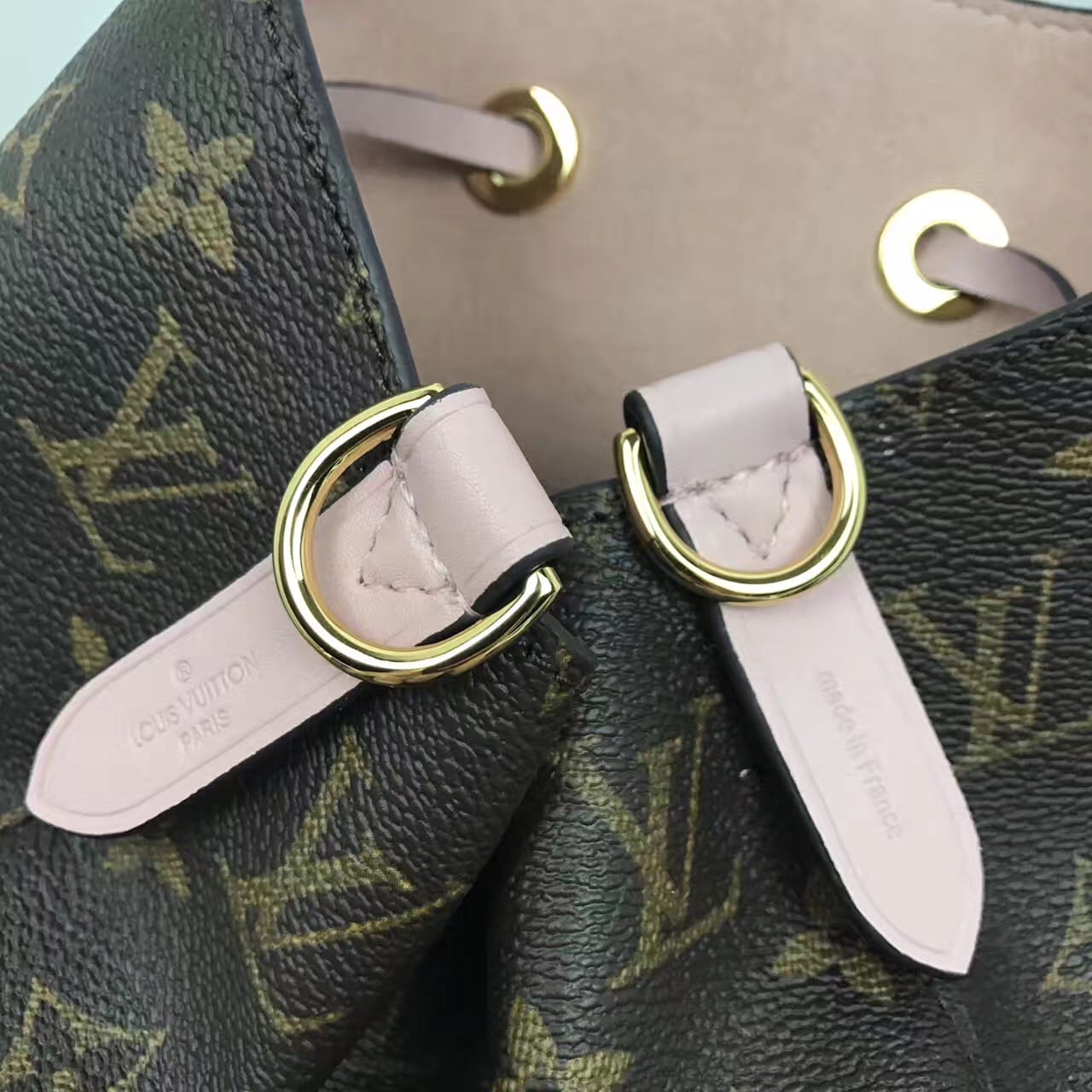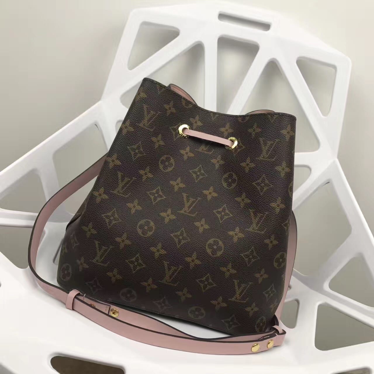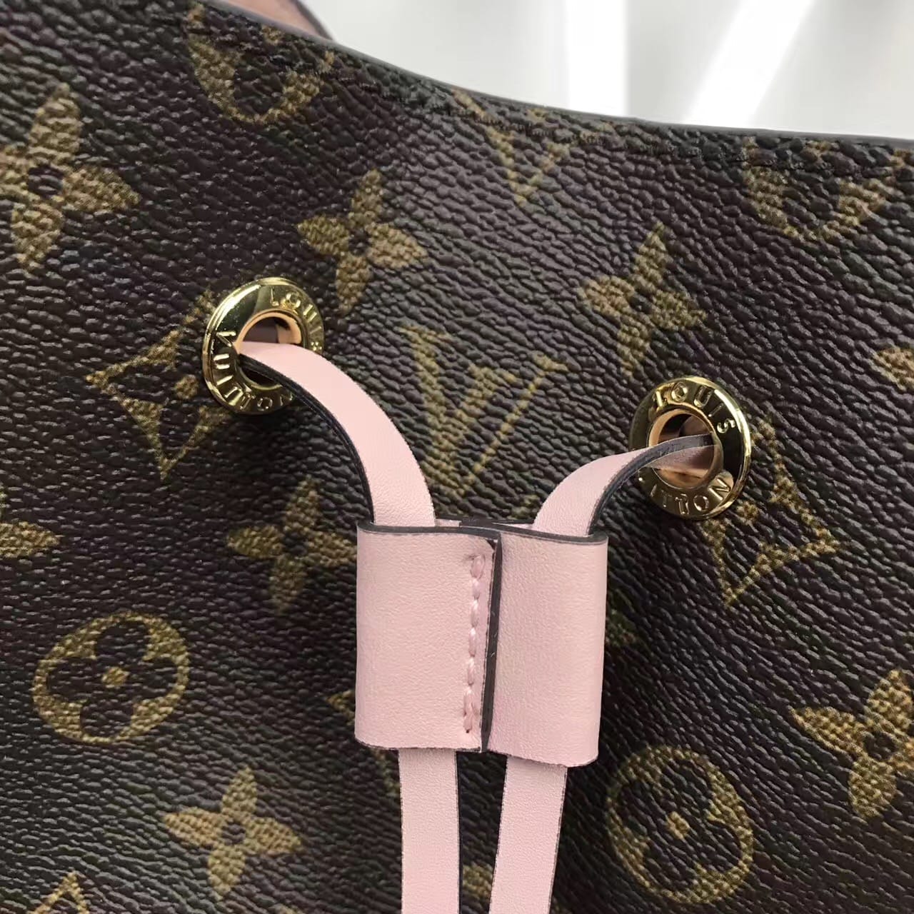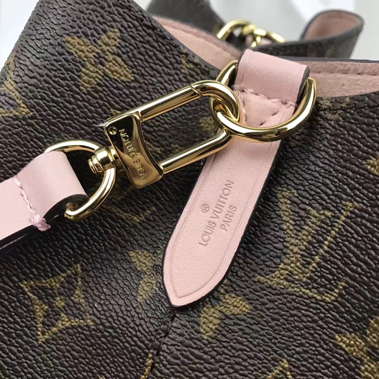 ?最新!升级版激光五金,诞生于1932年的香槟酒袋Noe以全新面貌回归2019年春季系列新潮水桶包Neonoe选用柔软的Monogram帆布面料,可调节肩带设计便于打造风格现代的斜挎造型彩色小牛皮饰边,彩色超细纤维粘合内衬,金色金属饰件束绳闭合,配有摁扣的可调节长包带,拉链内袋!型號:M44022;尺寸:26-22-27CM