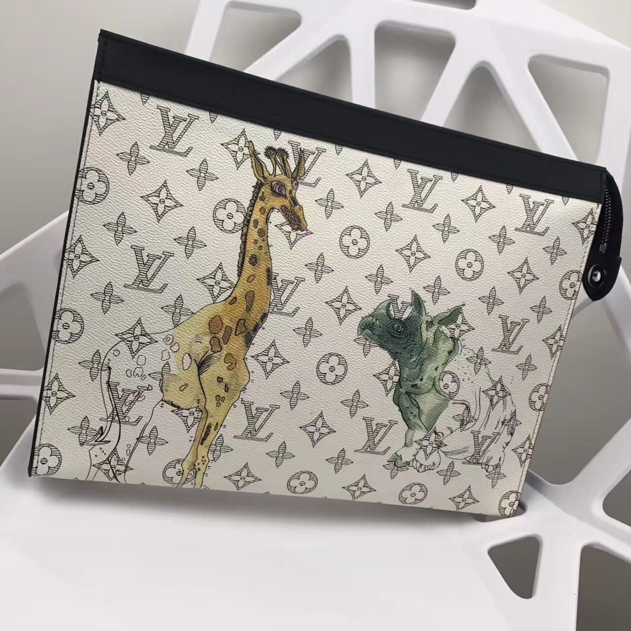 LV 2017早春新款 POCHETTE VOYAGE 中号手袋M66639长颈鹿动物印花