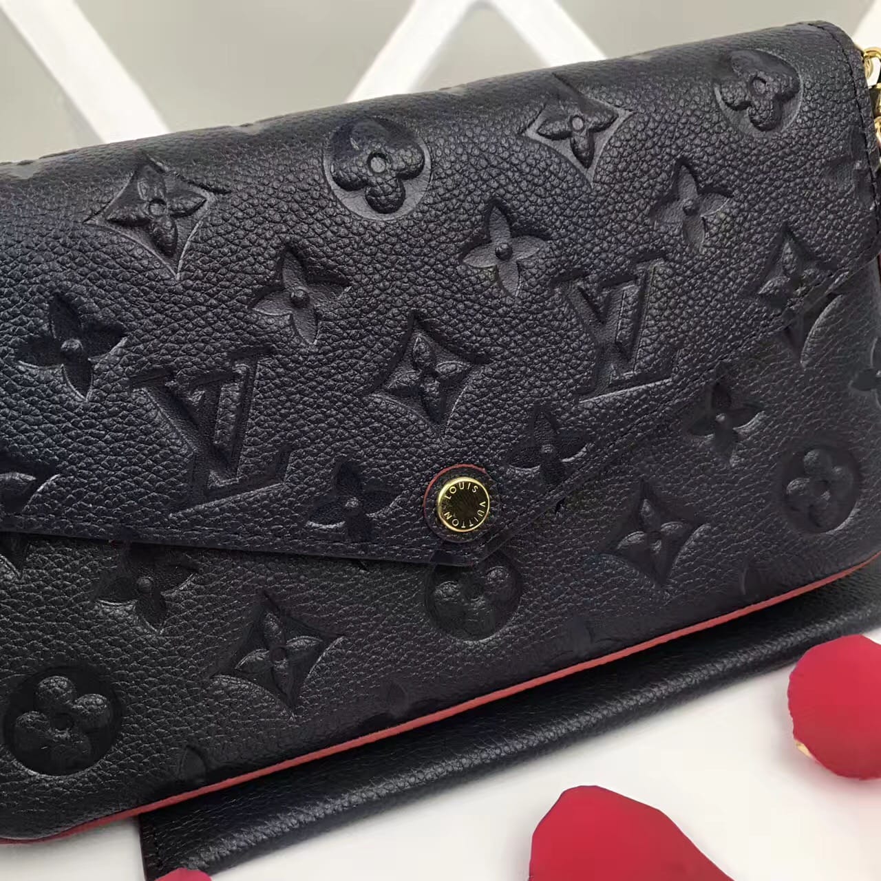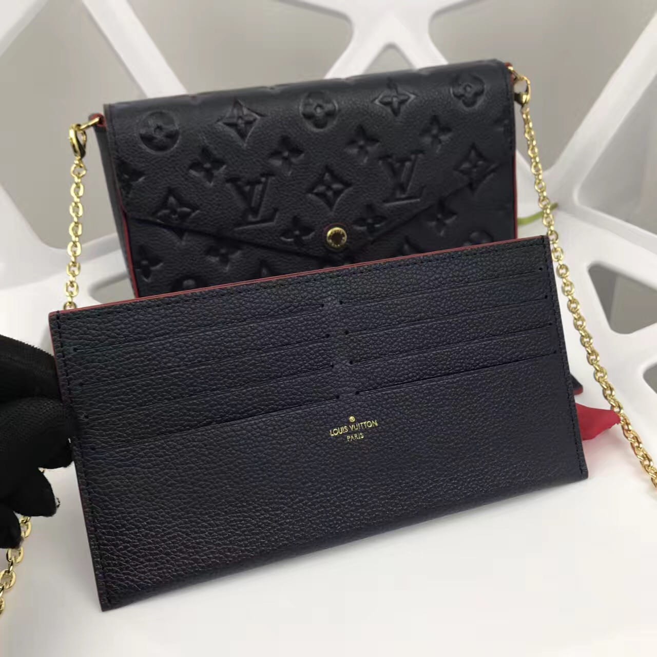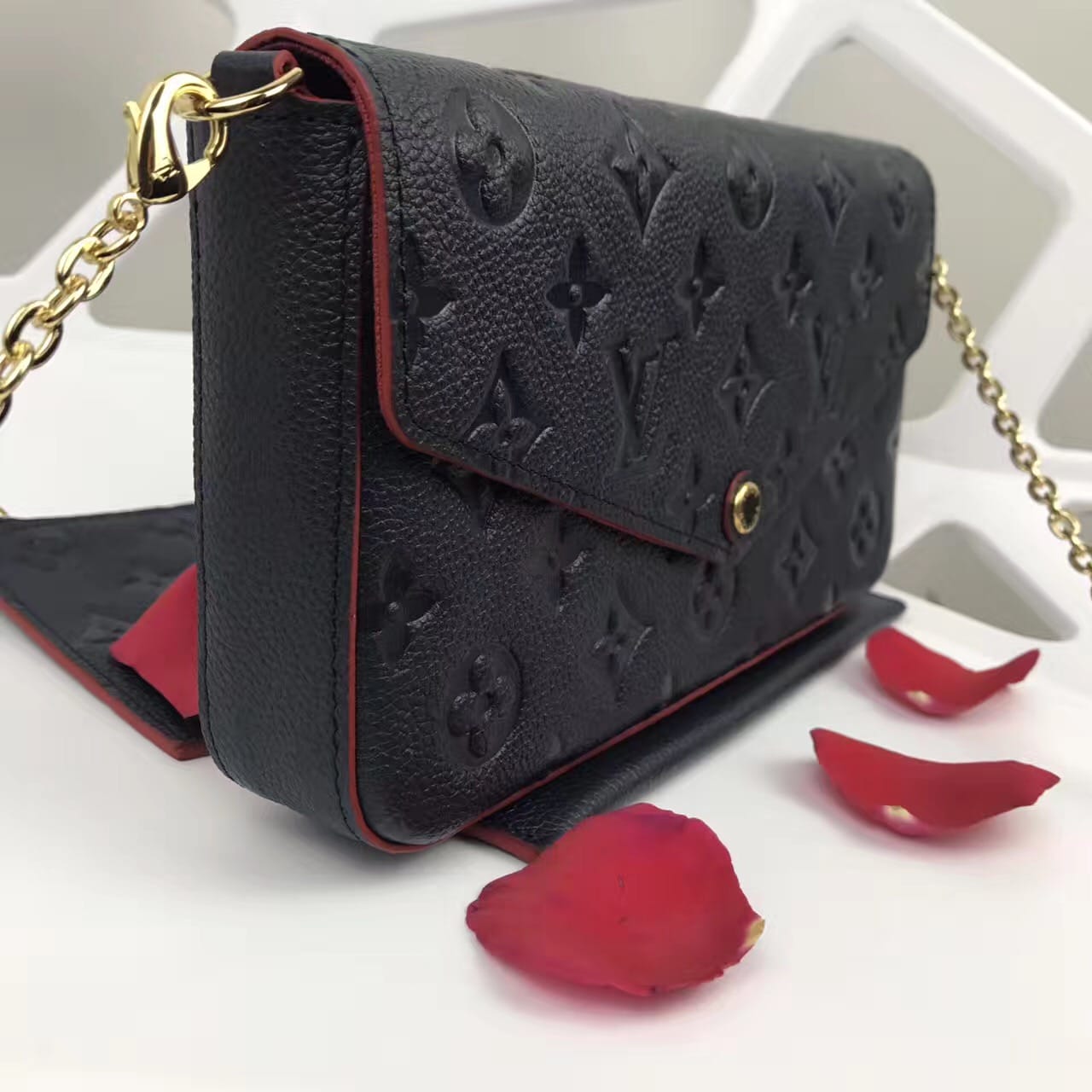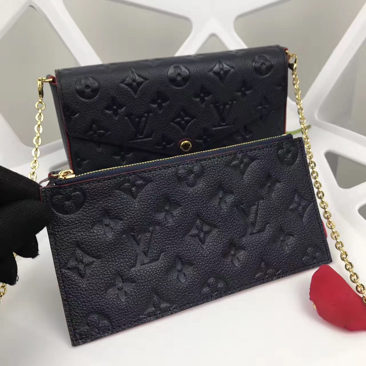 【正品复刻】原单实拍!款号:M64065POCHETTE FÉLICIE 手袋 由Monogram Empreinte帆布面料裁制而成的Pochette Felicie内含两个可脱卸口袋,是携带整理您的日常用品的时尚之选。它不仅仅是款钱夹,除去银色链条后,还可以用作迷人的手包或小型手袋。尺寸:21.0 cm