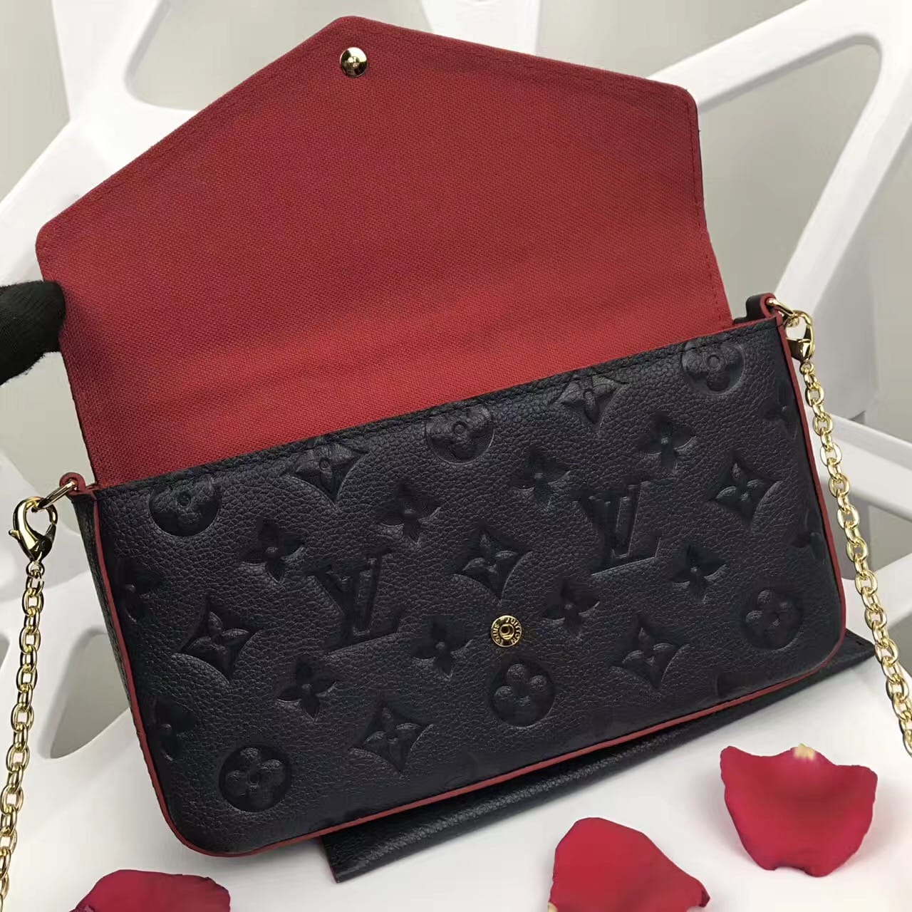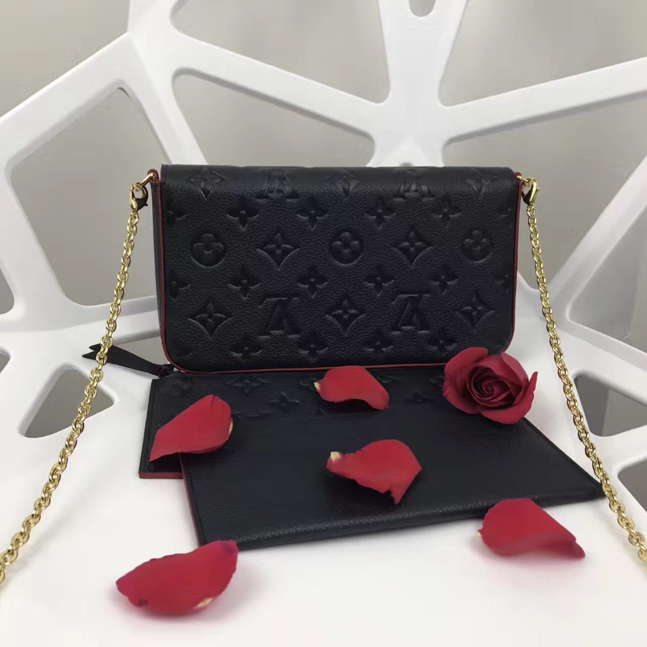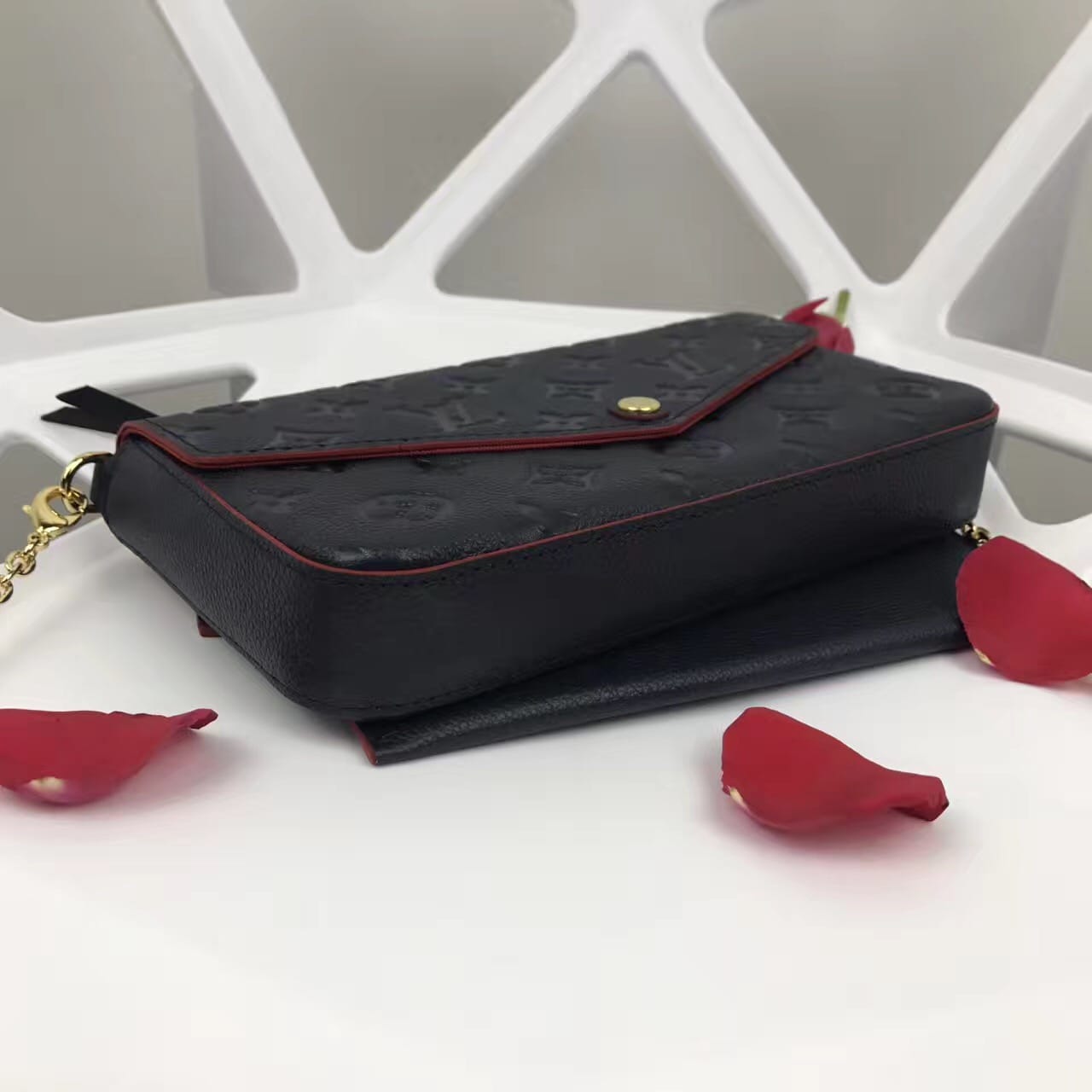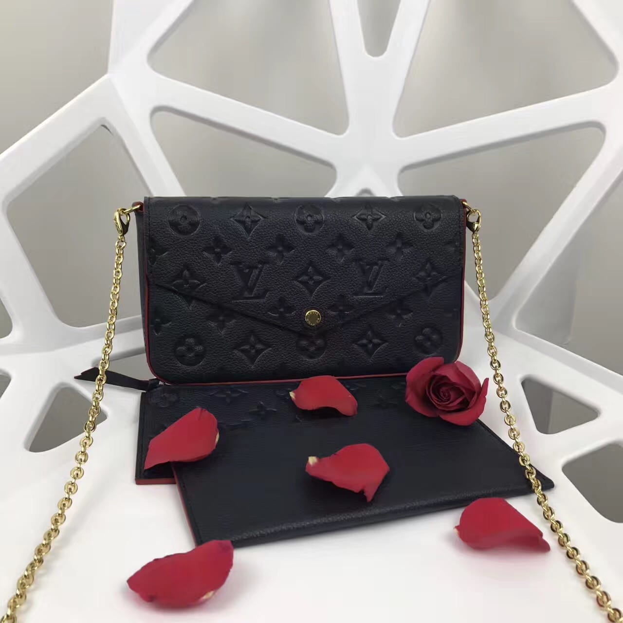 【正品复刻】原单实拍!款号:M64065POCHETTE FÉLICIE 手袋 由Monogram Empreinte帆布面料裁制而成的Pochette Felicie内含两个可脱卸口袋,是携带整理您的日常用品的时尚之选。它不仅仅是款钱夹,除去银色链条后,还可以用作迷人的手包或小型手袋。尺寸:21.0 cm