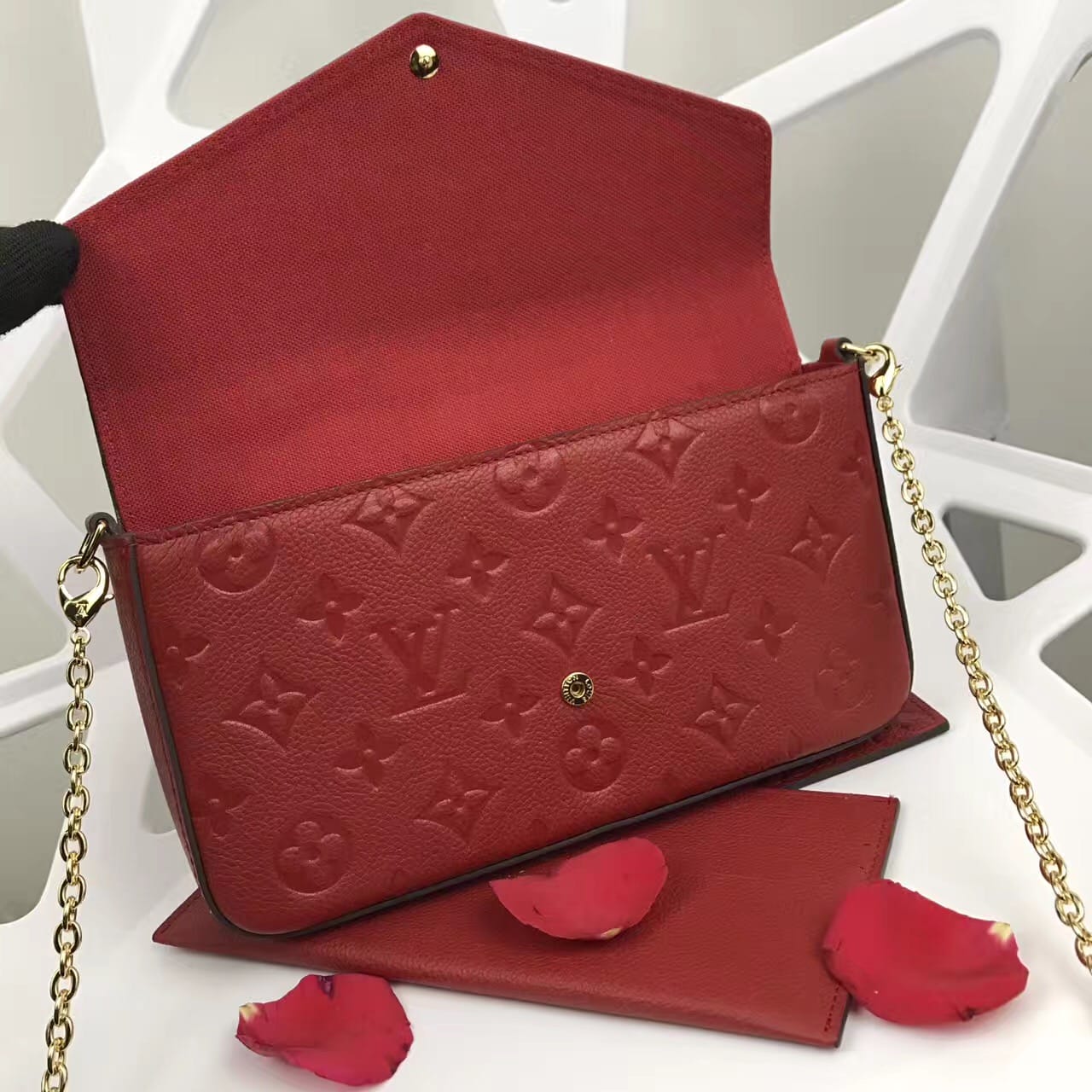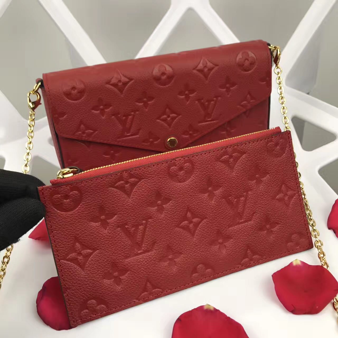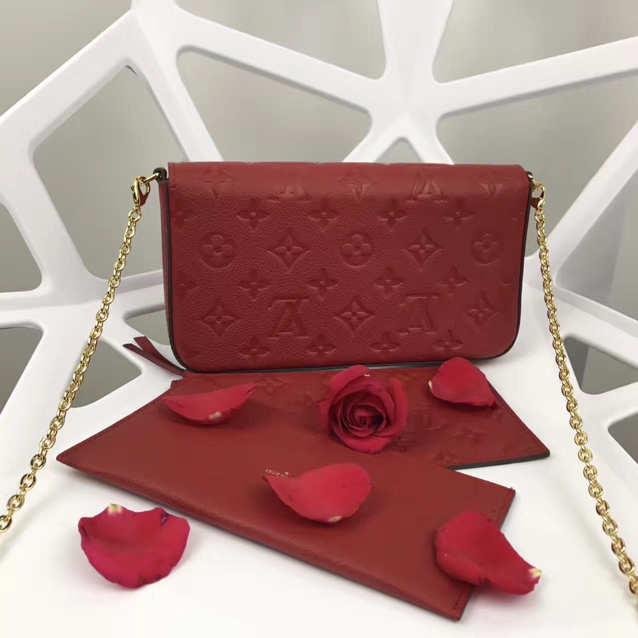 ?【正品复刻】原单实拍!款号:M64065POCHETTE F?LICIE 手袋 ?由Monogram Empreinte帆布面料裁制而成的Pochette Felicie内含两个可脱卸口袋,是携带整理您的日常用品的时尚之选。它不仅仅是款钱夹,除去银色链条后,还可以用作迷人的手包或小型手袋。尺寸:21.0 cm?
