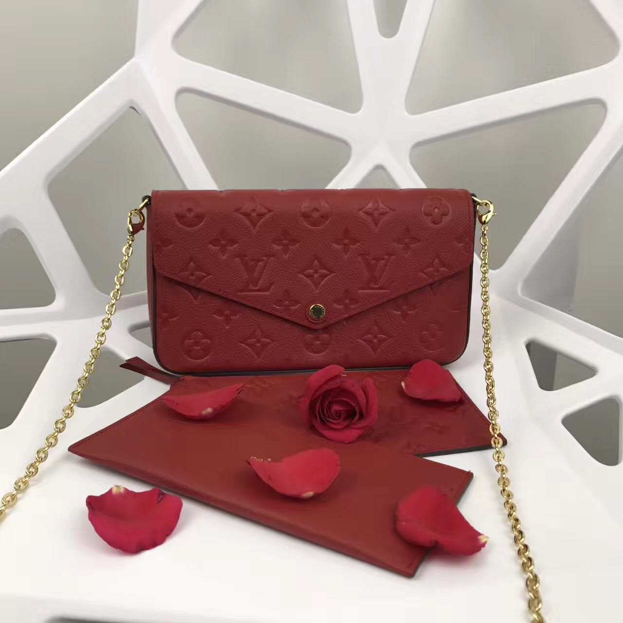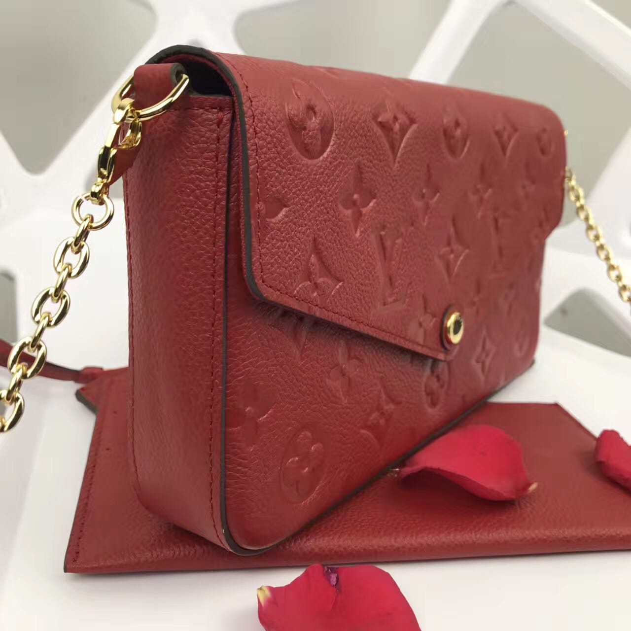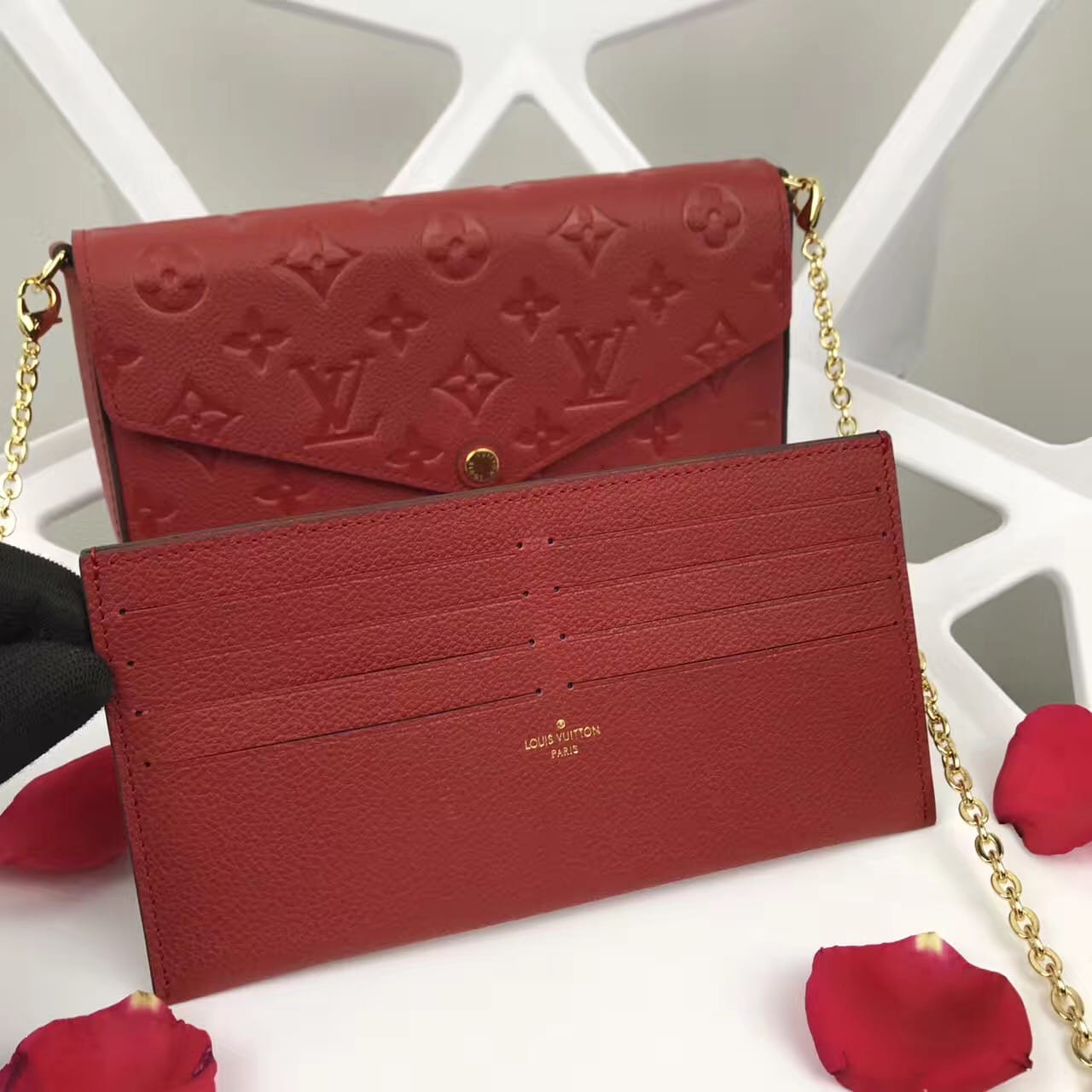 ?【正品复刻】原单实拍!款号:M64065POCHETTE F?LICIE 手袋 ?由Monogram Empreinte帆布面料裁制而成的Pochette Felicie内含两个可脱卸口袋,是携带整理您的日常用品的时尚之选。它不仅仅是款钱夹,除去银色链条后,还可以用作迷人的手包或小型手袋。尺寸:21.0 cm?