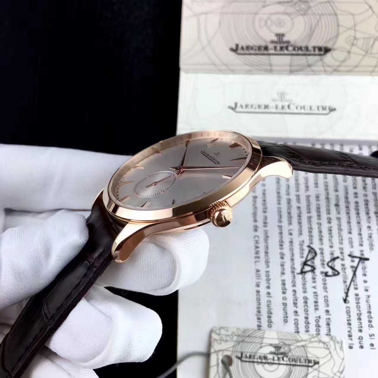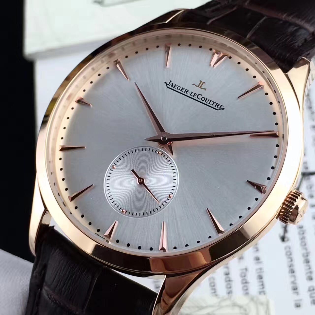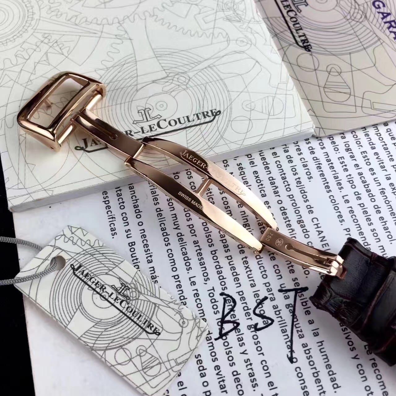 积家 金色316精钢表壳 进口小牛皮表带 原版折叠扣手表