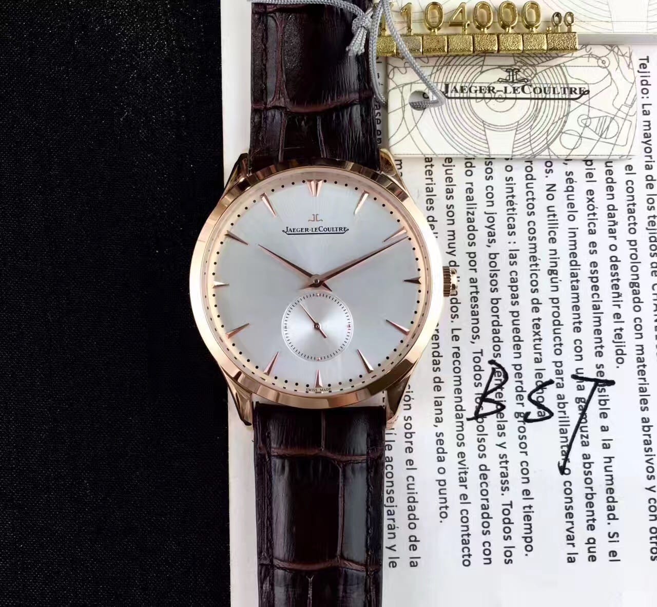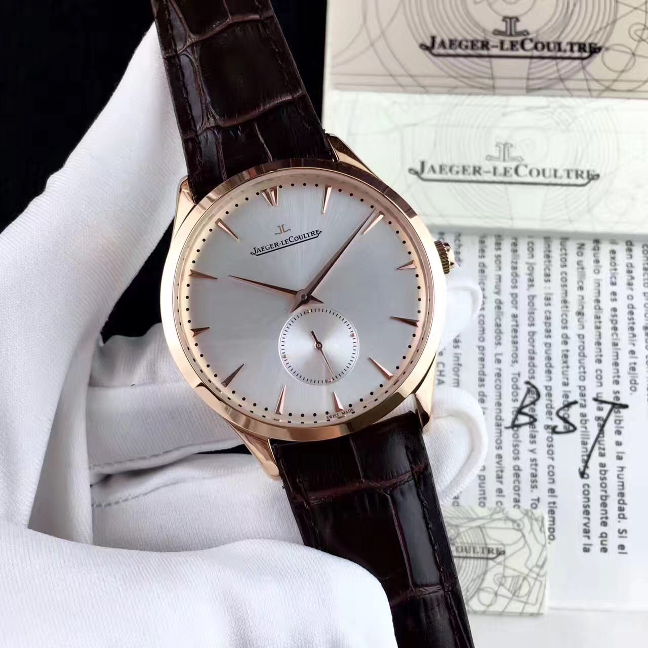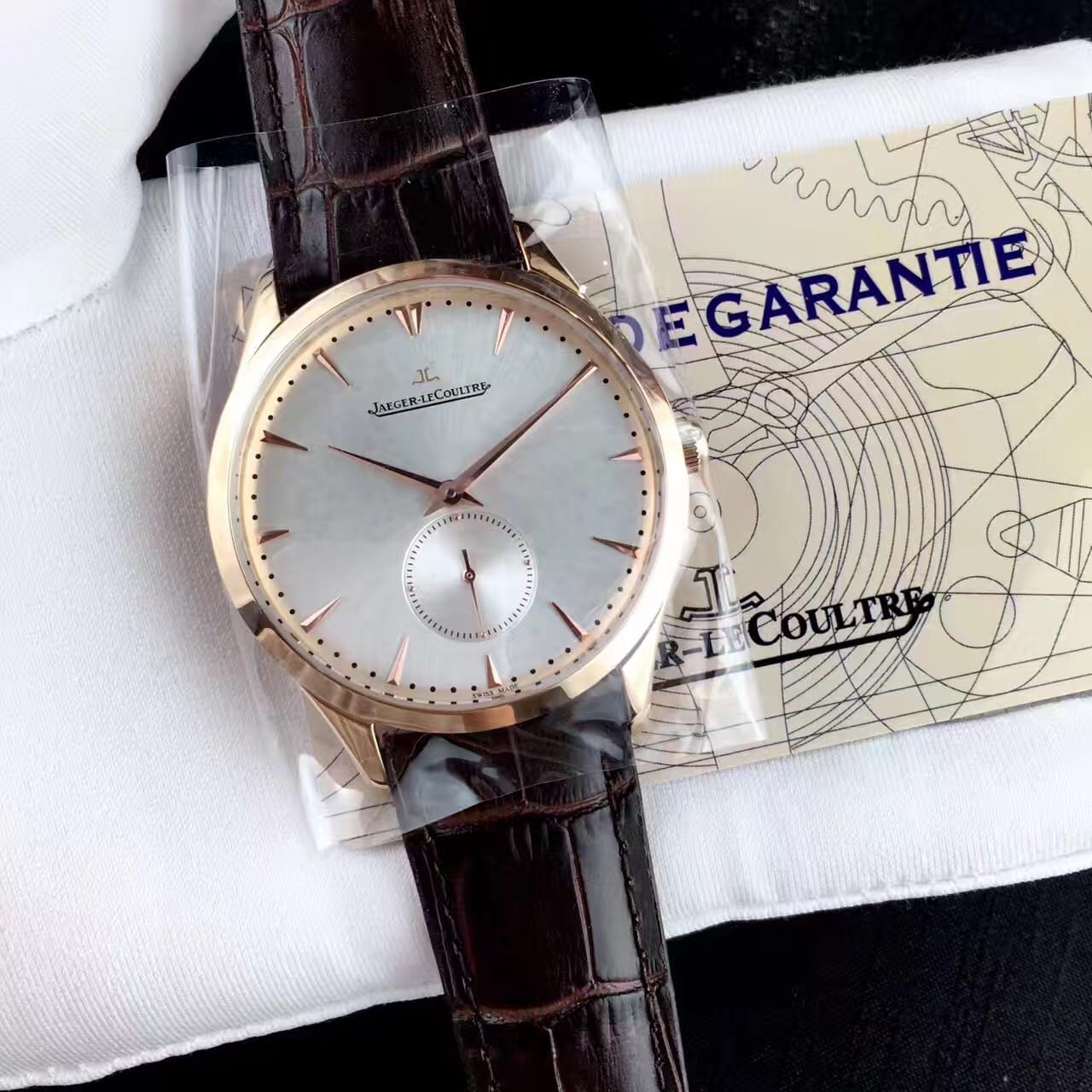 积家 金色316精钢表壳 进口小牛皮表带 原版折叠扣手表