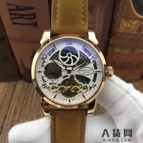 帕玛强尼 玫瑰金钢圈镂空男士腕表 意大利真牛皮表带
