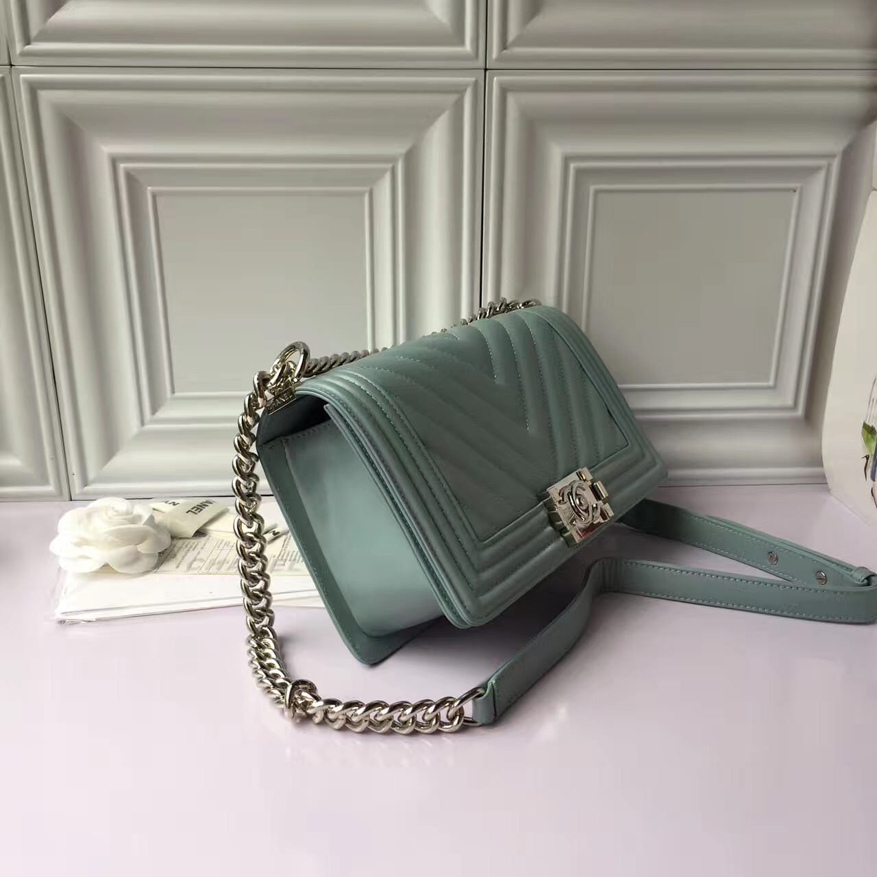 香奈儿 67086浮绿羊皮古银 原版五金女士斜挎包
