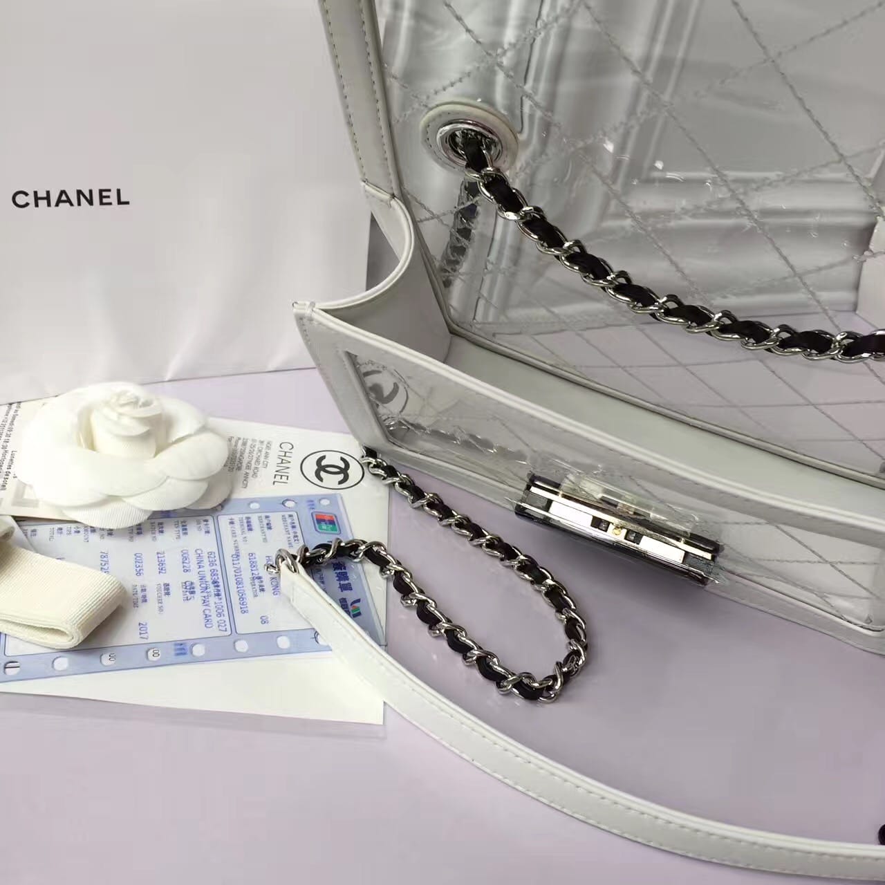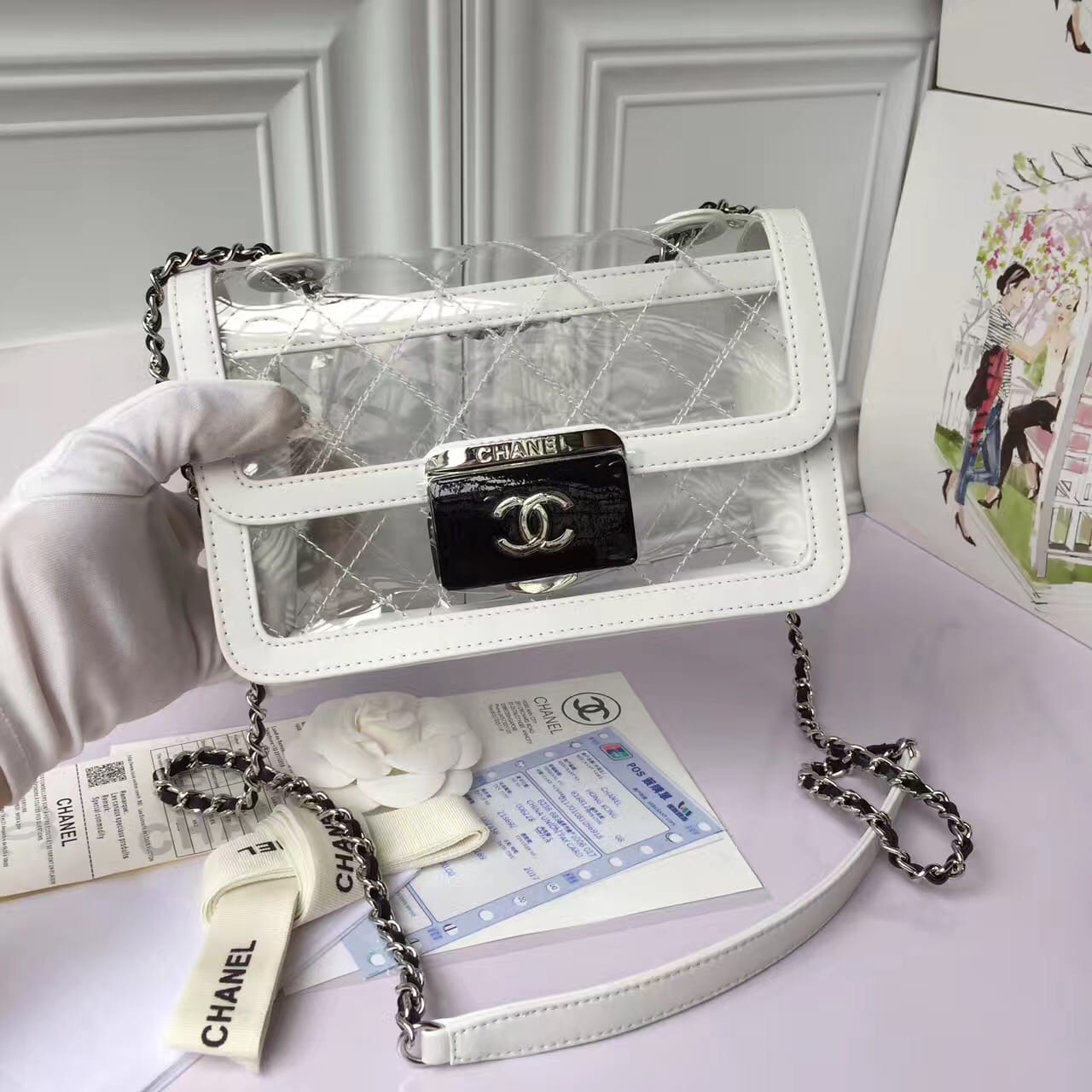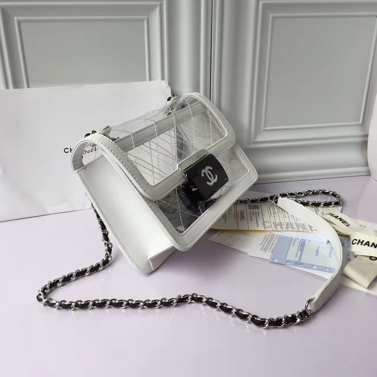 香奈儿 93221白色黑金属 女士透明斜挎包