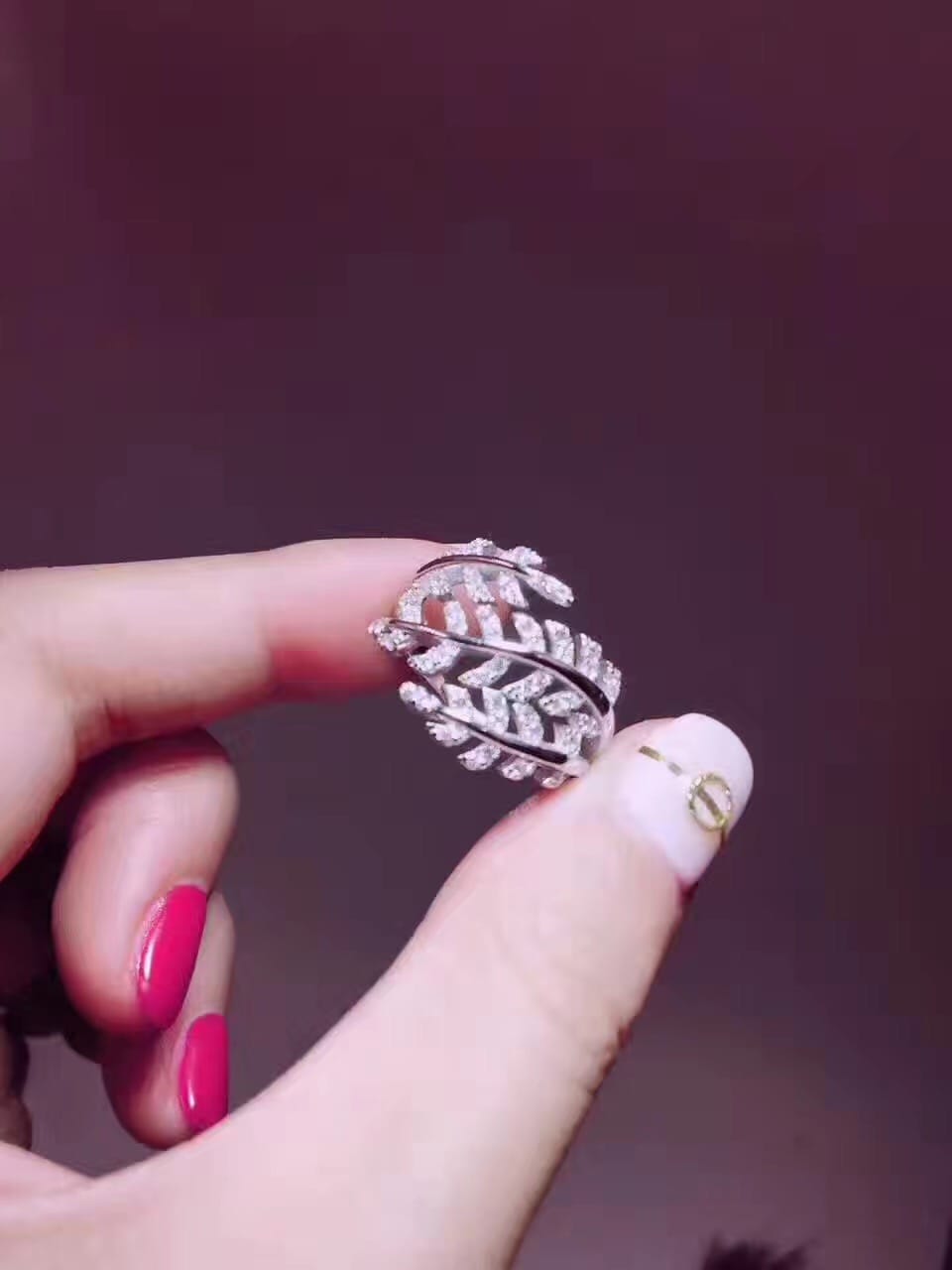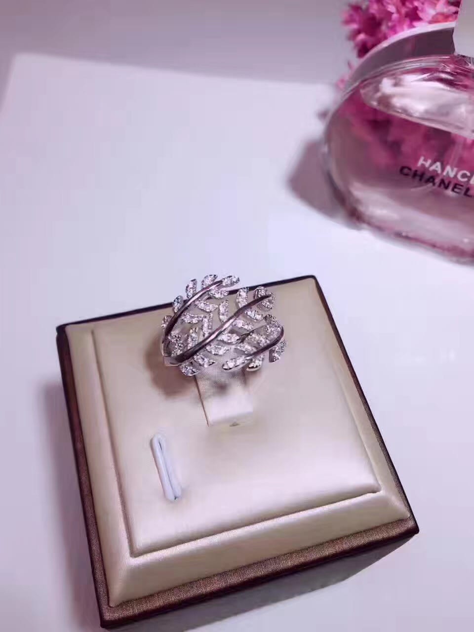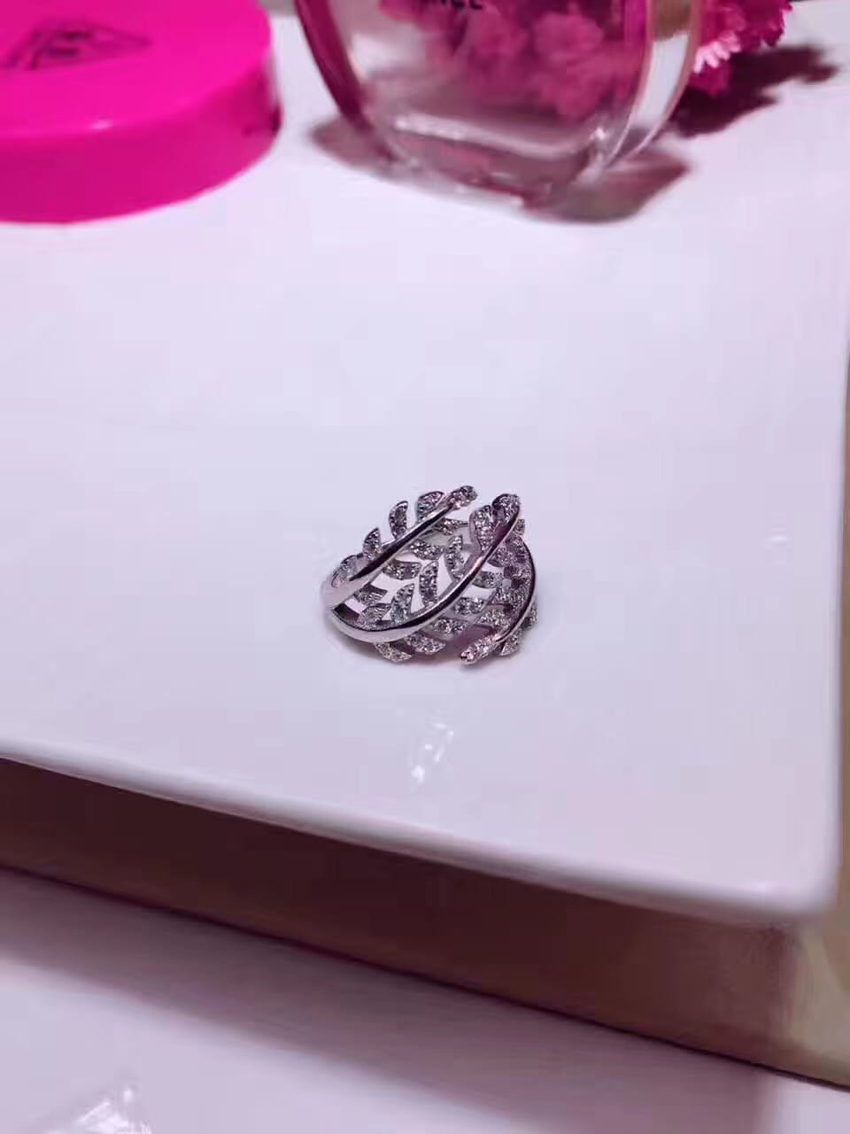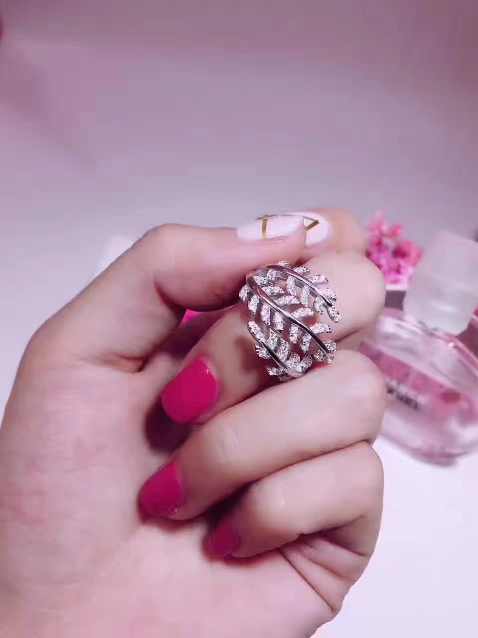 925纯银爆款到货Tiffany&Co 魔法树叶美钻戒指韩国流行款