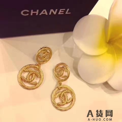 Chanel 秋冬新款金属圆环耳环专柜 黄铜 原版logo