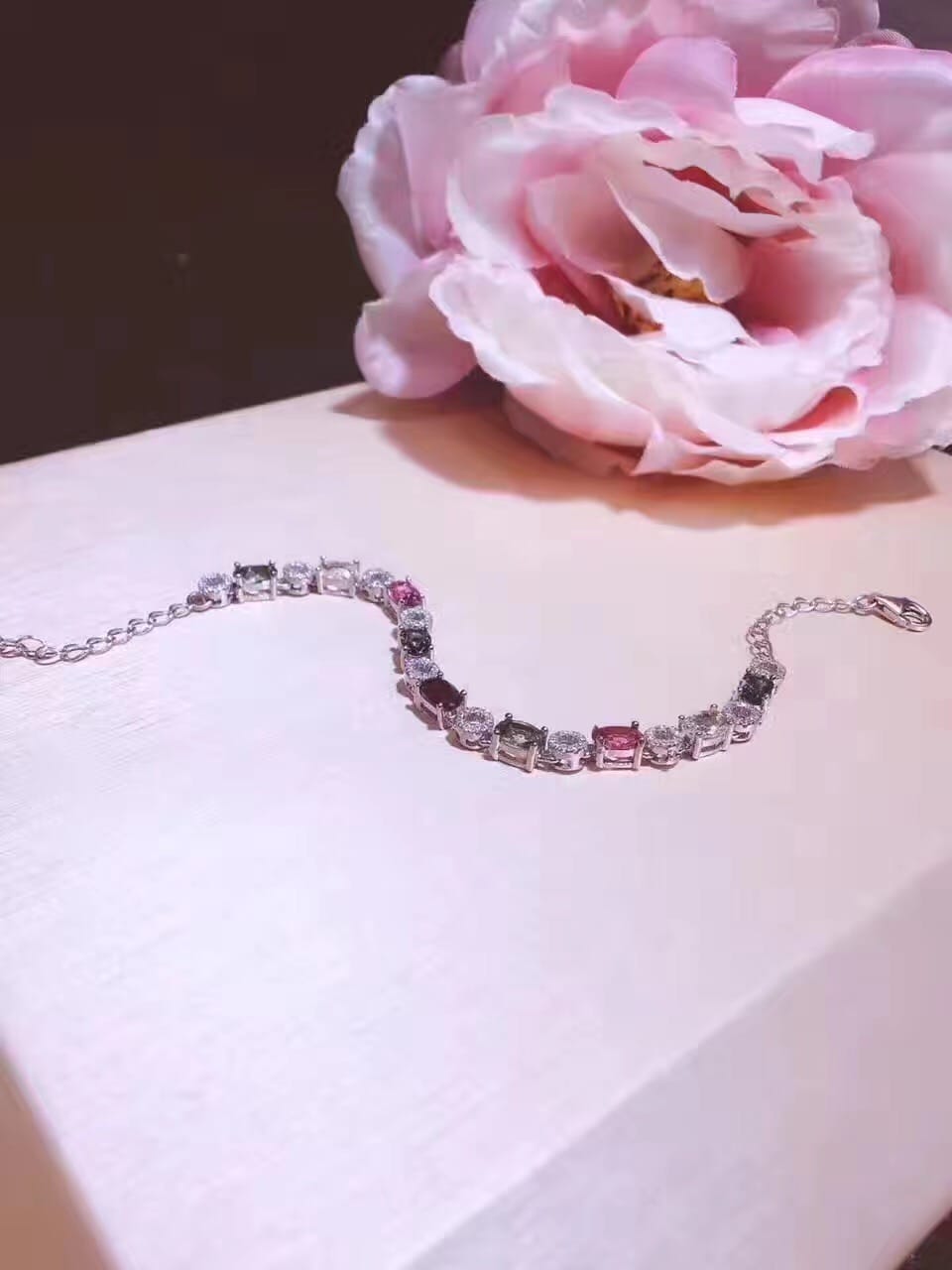 气质优雅款彩钻手链 S925纯银彩色水晶手链 奢华大牌范儿