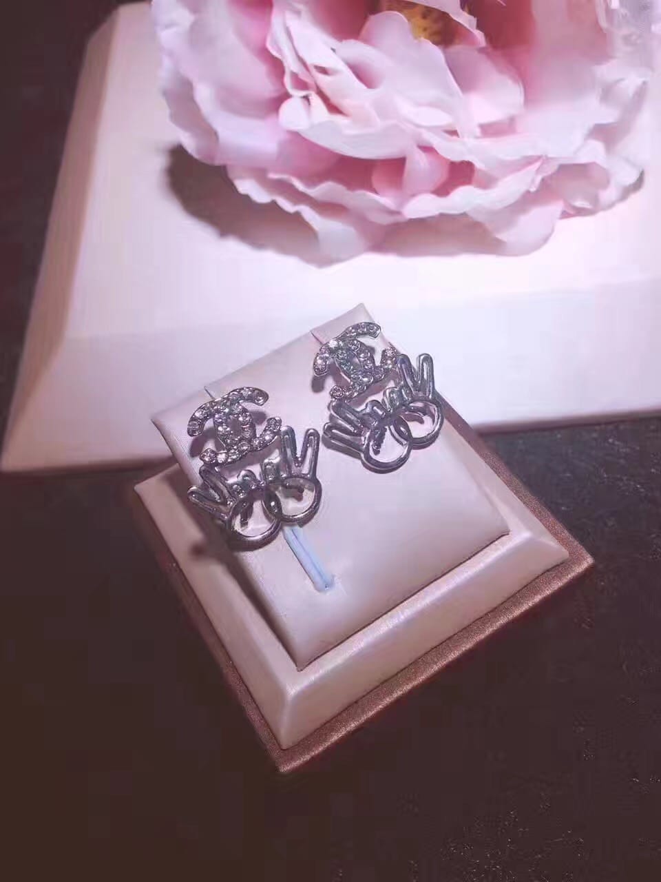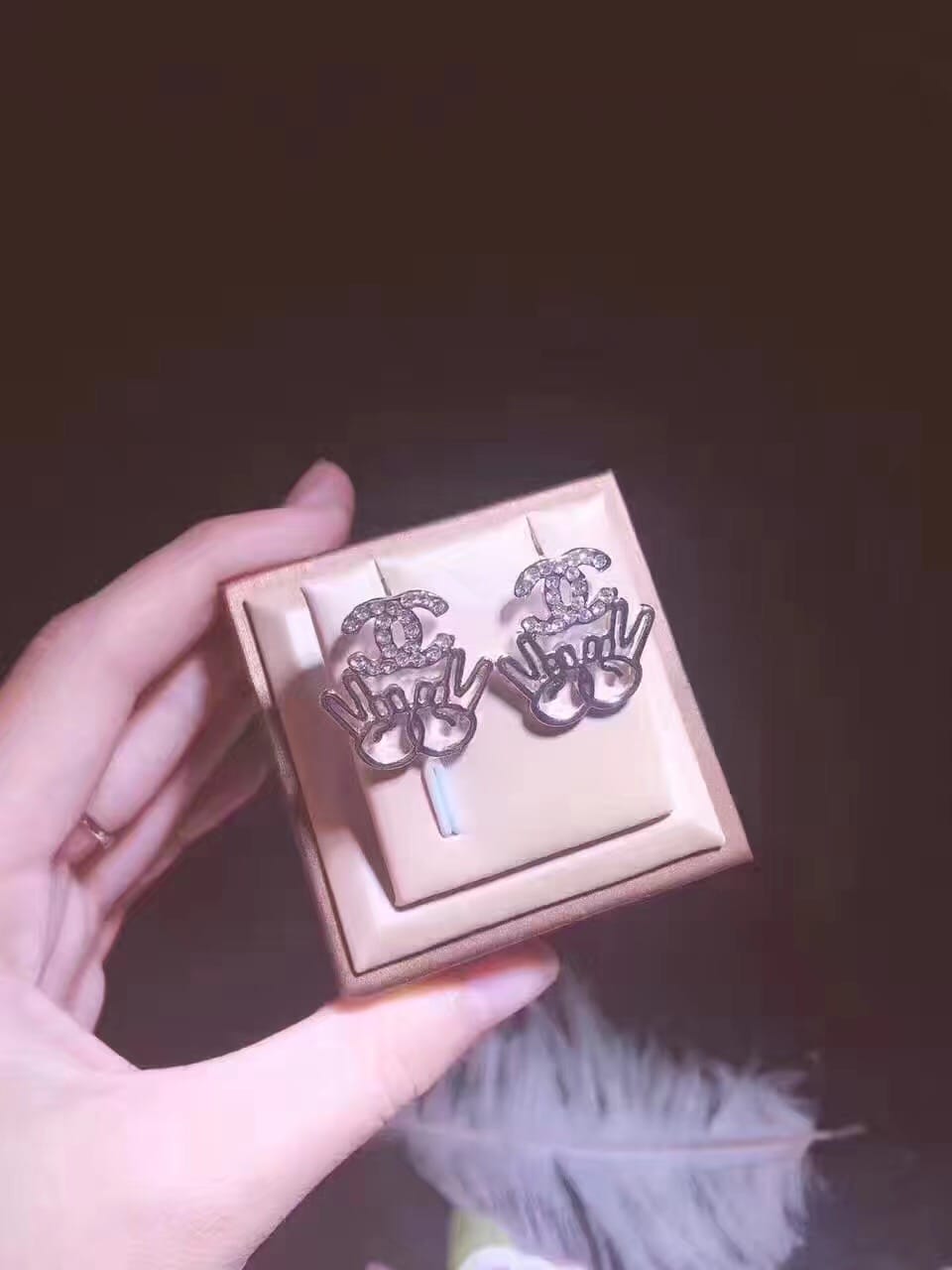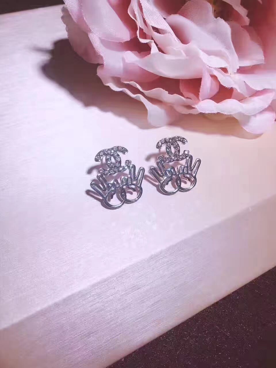 高碳钻小香s925银针 亚金微镶满钻胜利耳钉