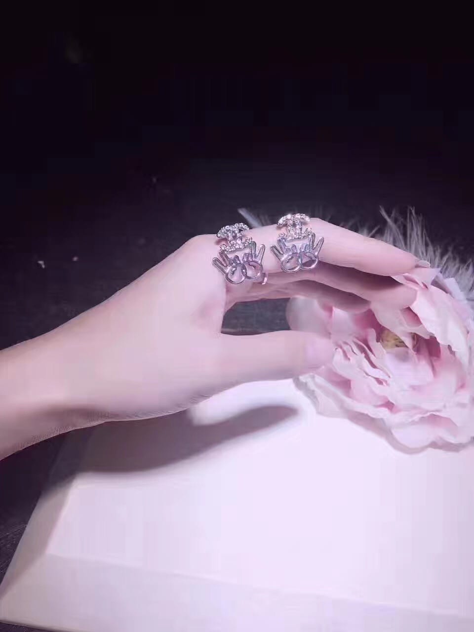 S925纯银爱心皇冠戒指 尚美-CHAUMET浓彩粉钻/黄钻皇家名媛气质