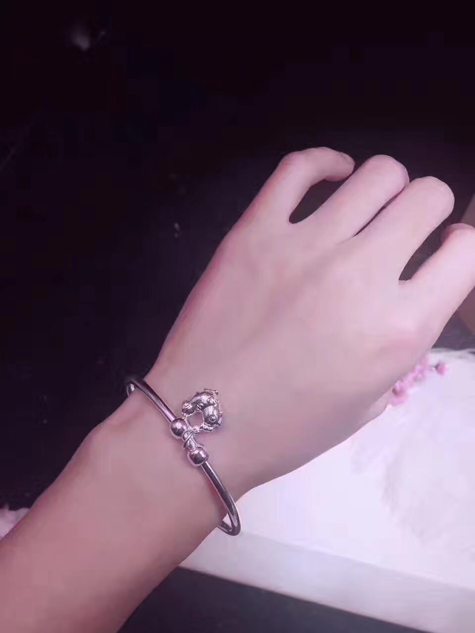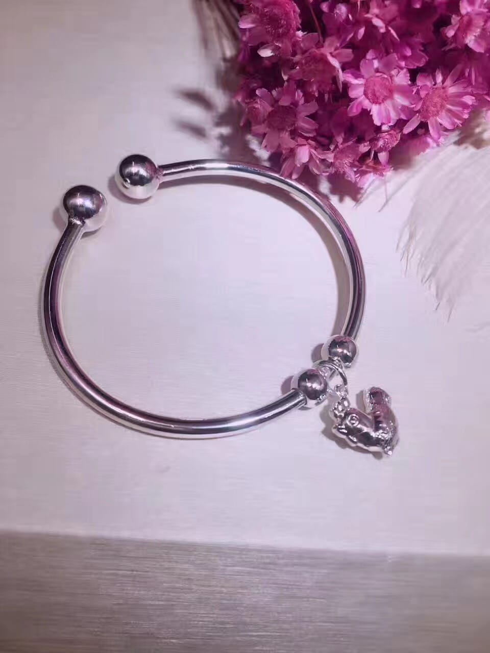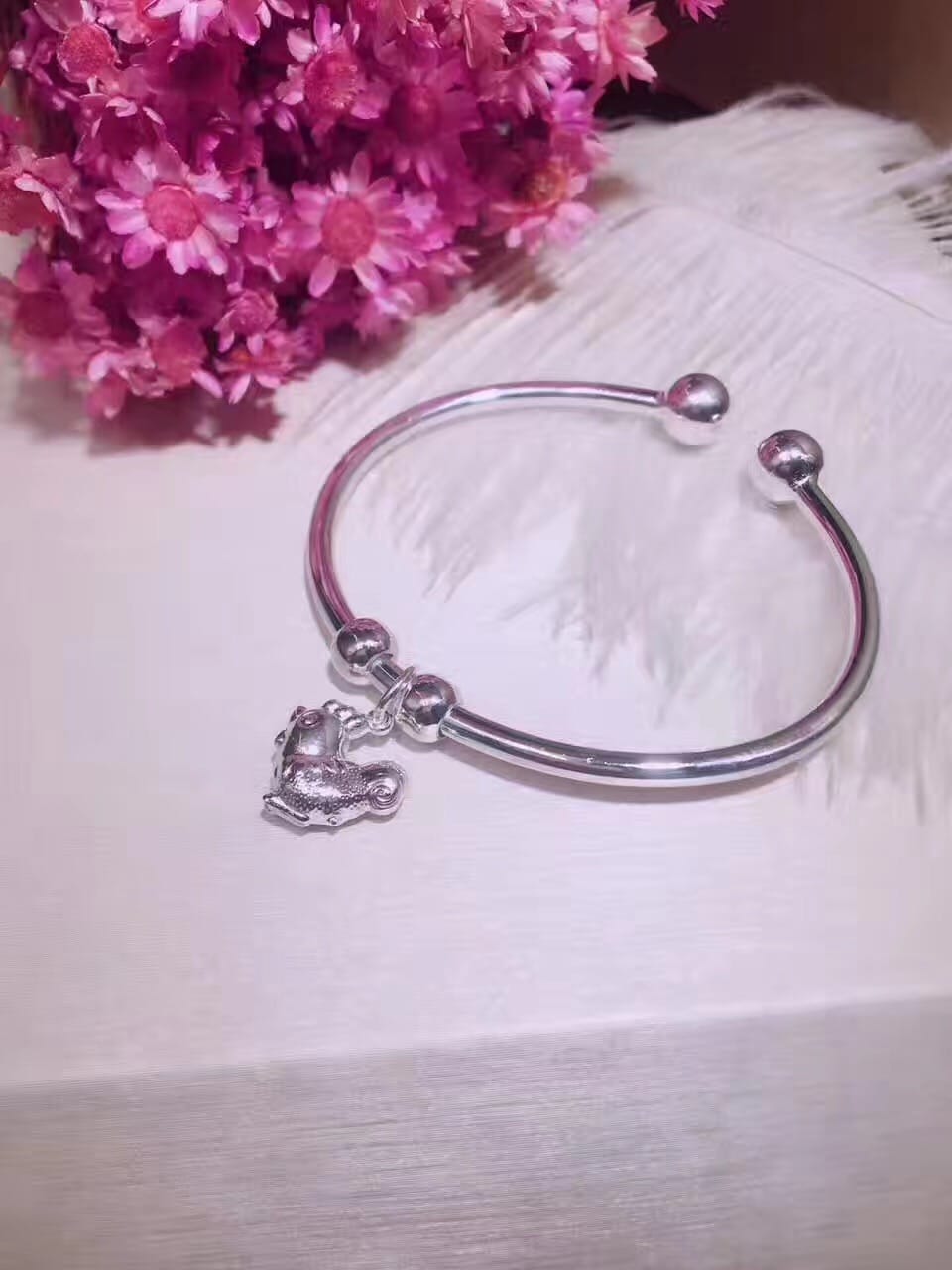 S990千足银小鸡仔开口手镯 金鸡贺岁 对珠开口大小可调节