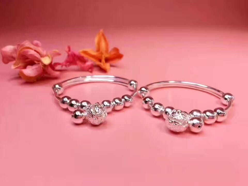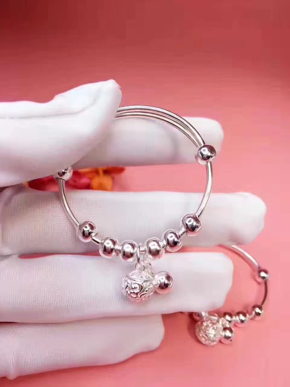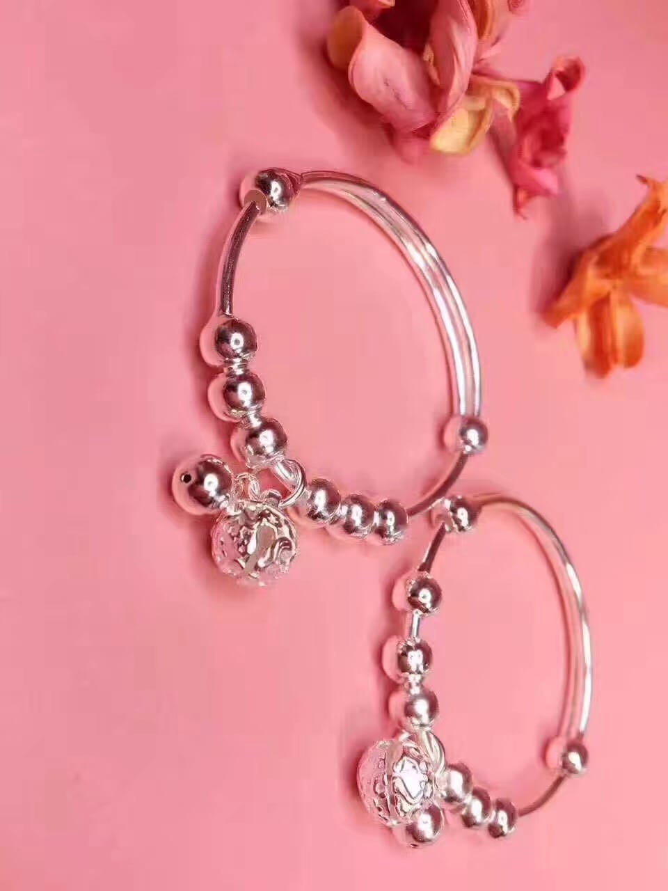 宝宝对镯 S990千足银宫铃手镯 复古风格的小宫铃挂件