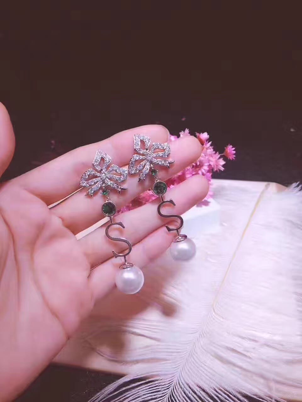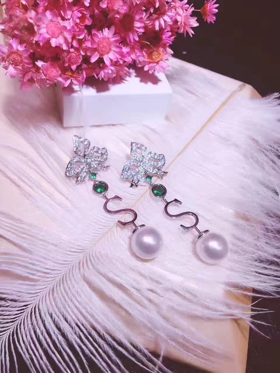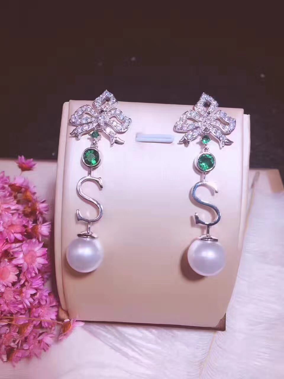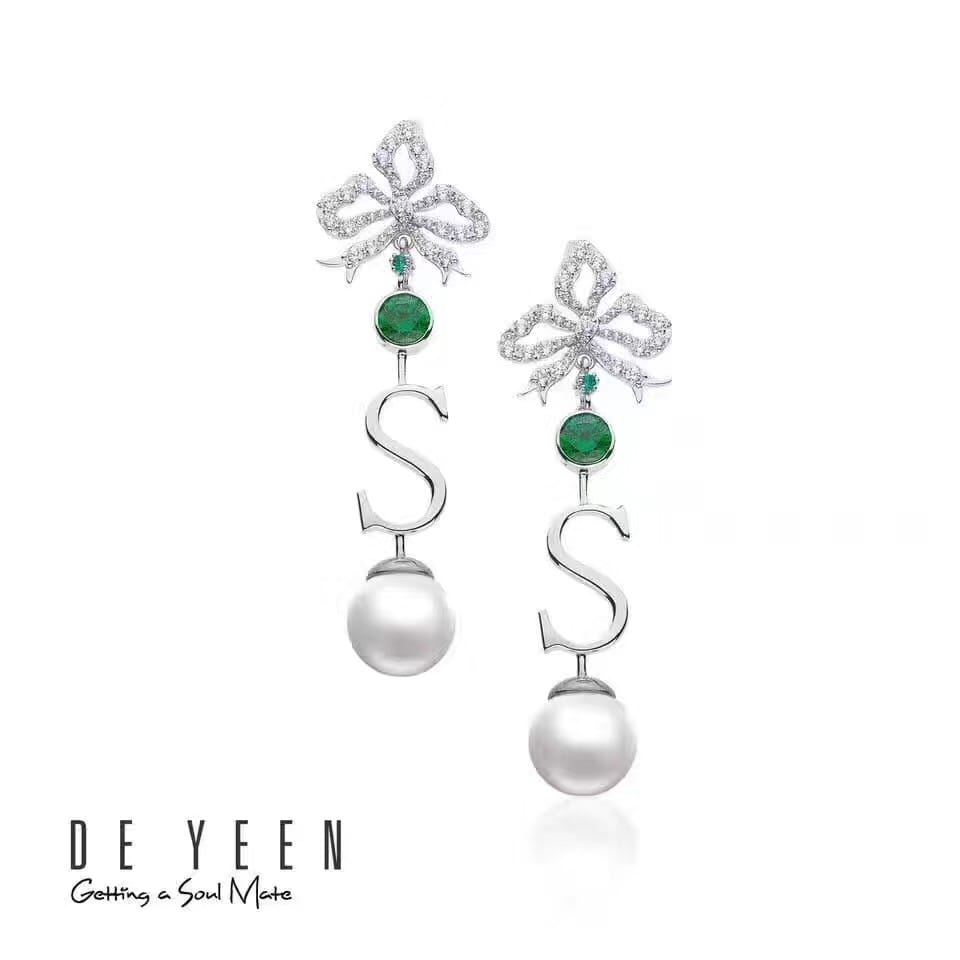 DE YEEN得音 S形珍珠耳钉 超美彩色爱心锆钻