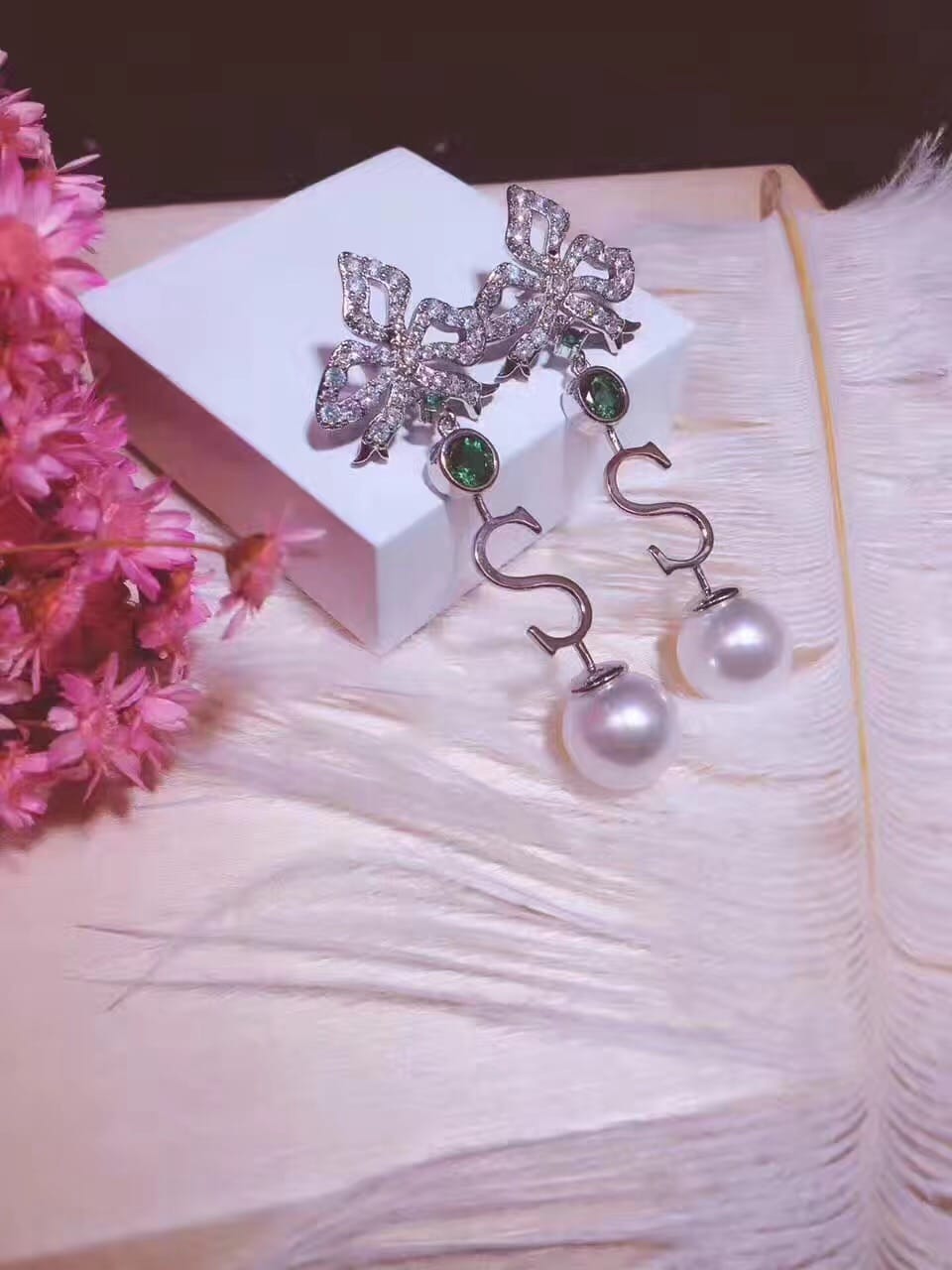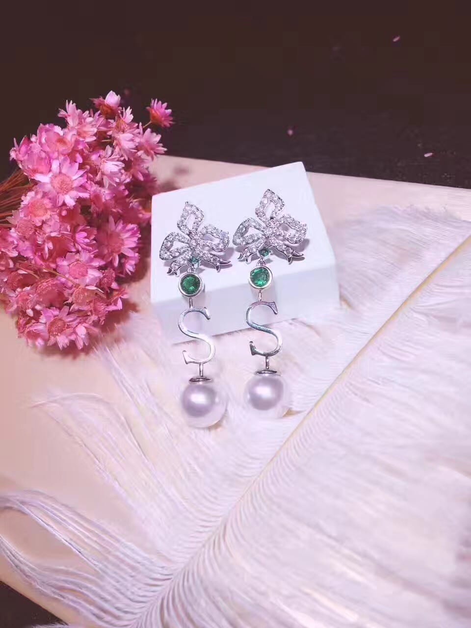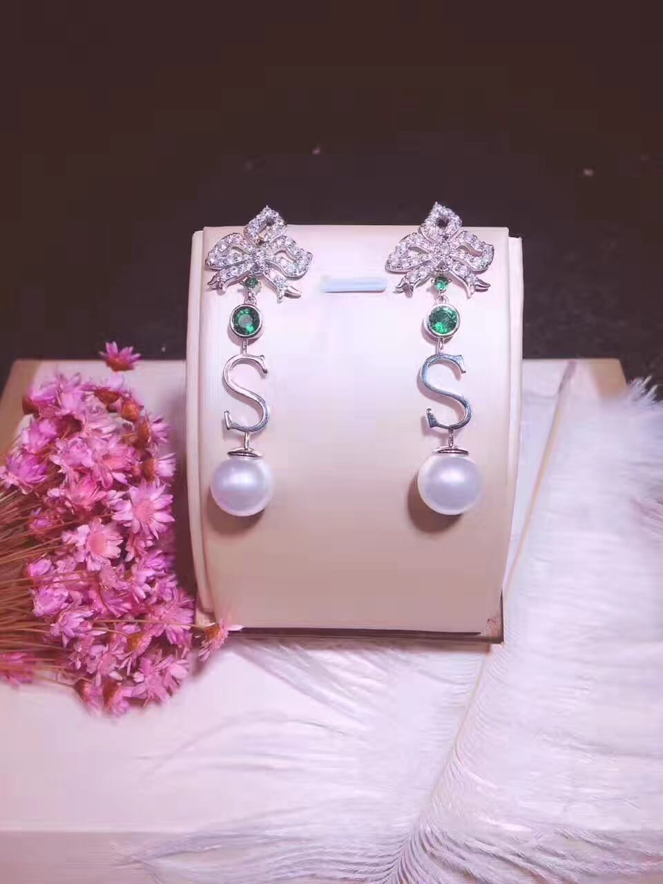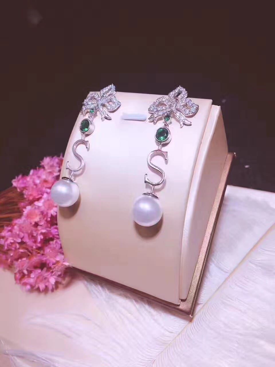 DE YEEN得音 S形珍珠耳钉 超美彩色爱心锆钻