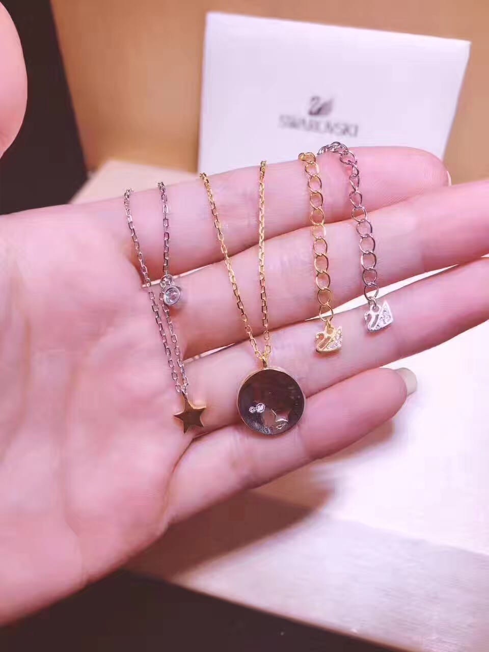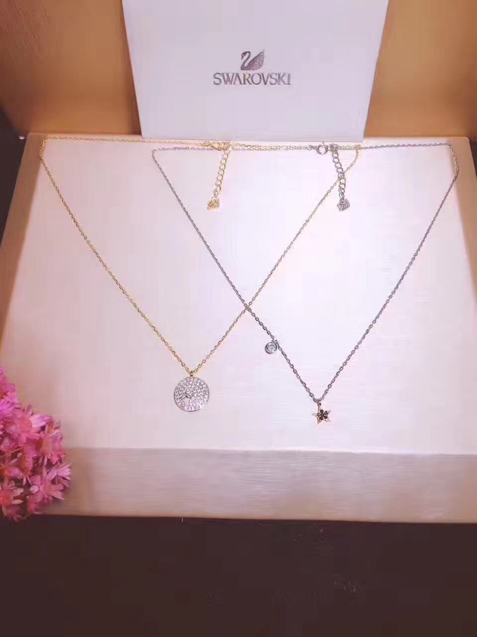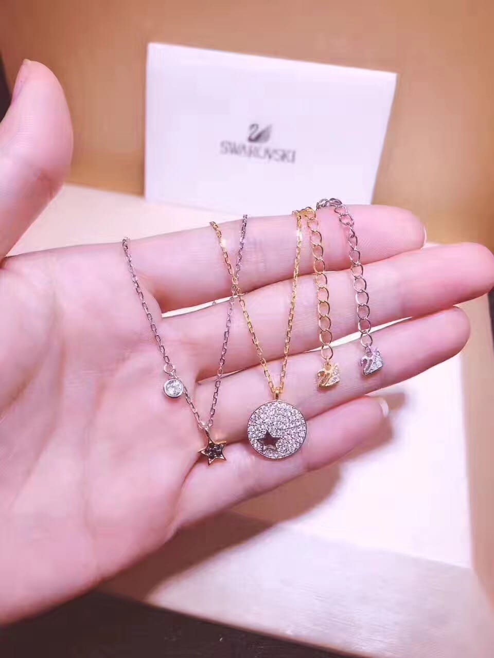 璀璨星 2017专柜施华洛世奇两件套璀璨星愿项链链尾加小天鹅