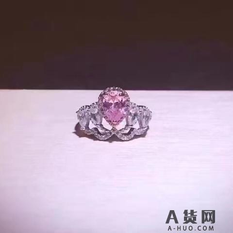 S925纯银爱心皇冠戒指 尚美-CHAUMET浓彩粉钻/黄钻皇家名媛气质