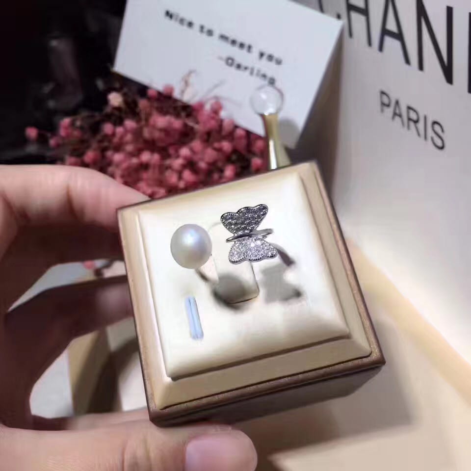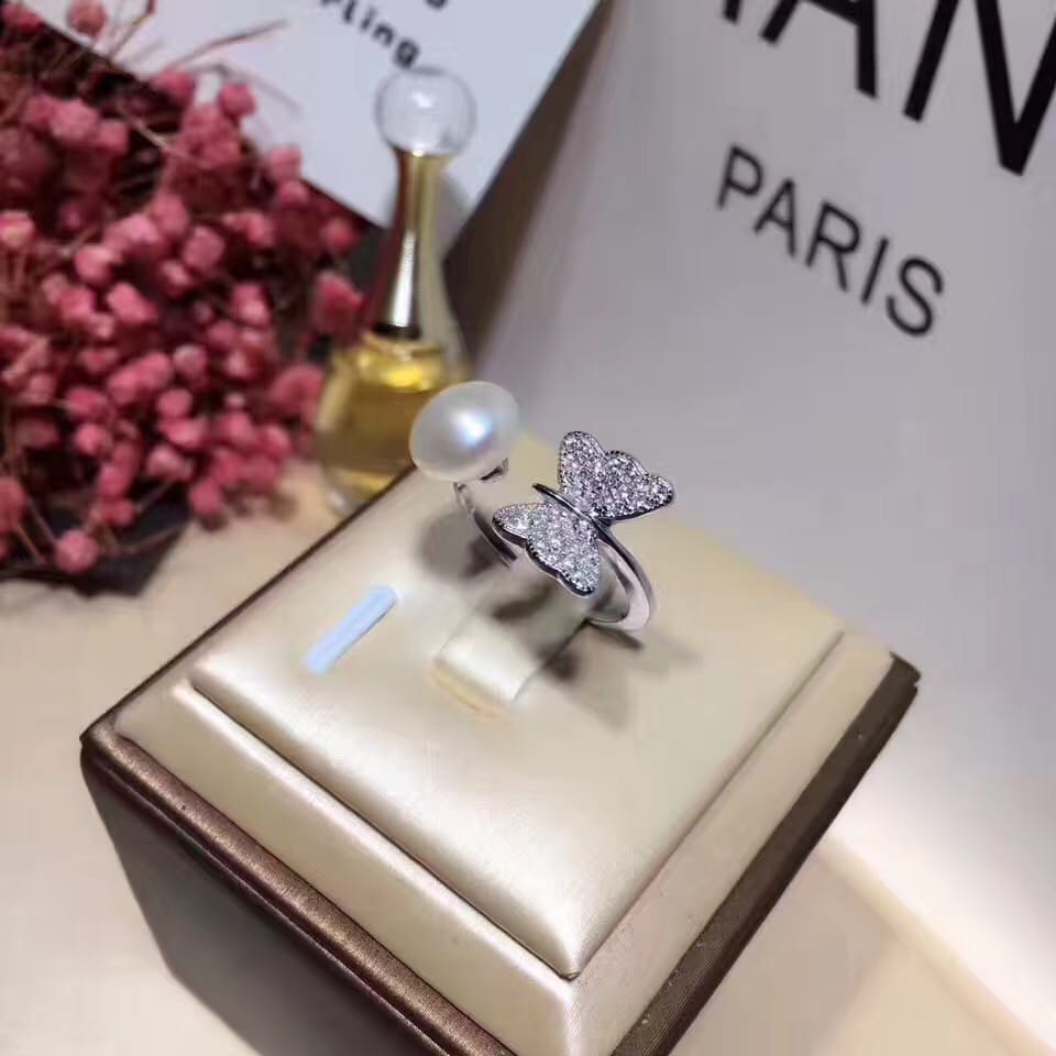 精湛的工艺 蝴蝶天然珍珠戒指开口 绝佳的选材