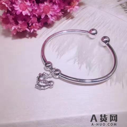 S990千足银小鸡仔开口手镯 金鸡贺岁 对珠开口大小可调节