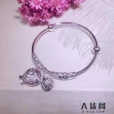S990千足银小鱼铃铛手镯3D镂空鲤鱼和小铃铛栩栩如生年年有鱼