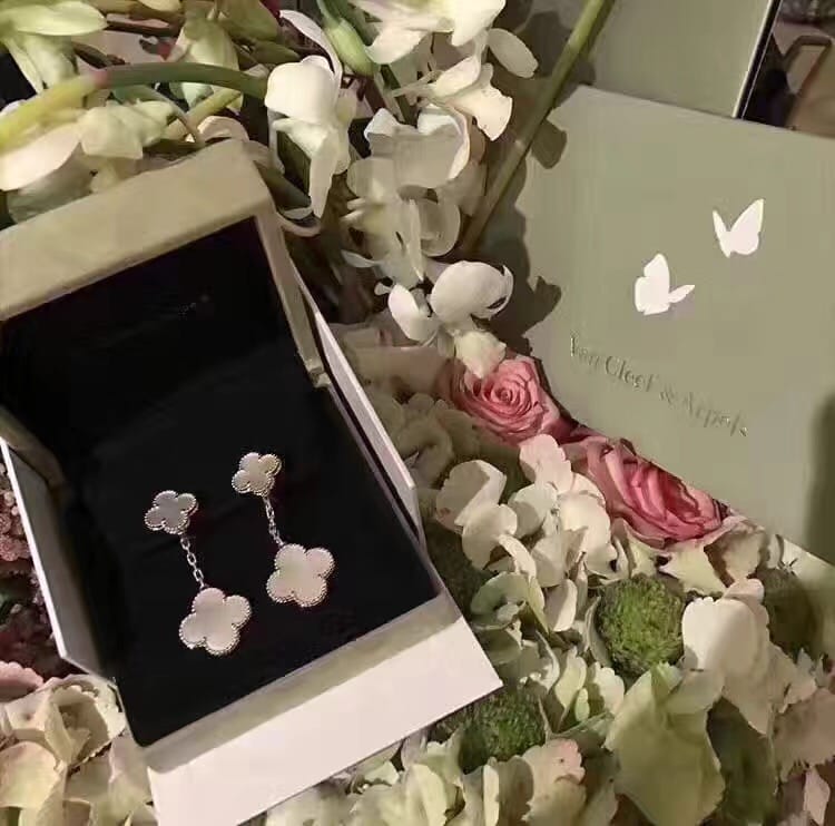 最新 白贝壳四叶草 Van Cleef &Arpels耳钉