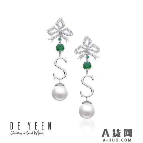 DE YEEN得音 S形珍珠耳钉 超美彩色爱心锆钻
