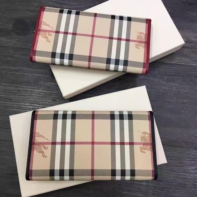 巴宝莉Haymarket Check格纹涂层钱夹,光滑皮革内