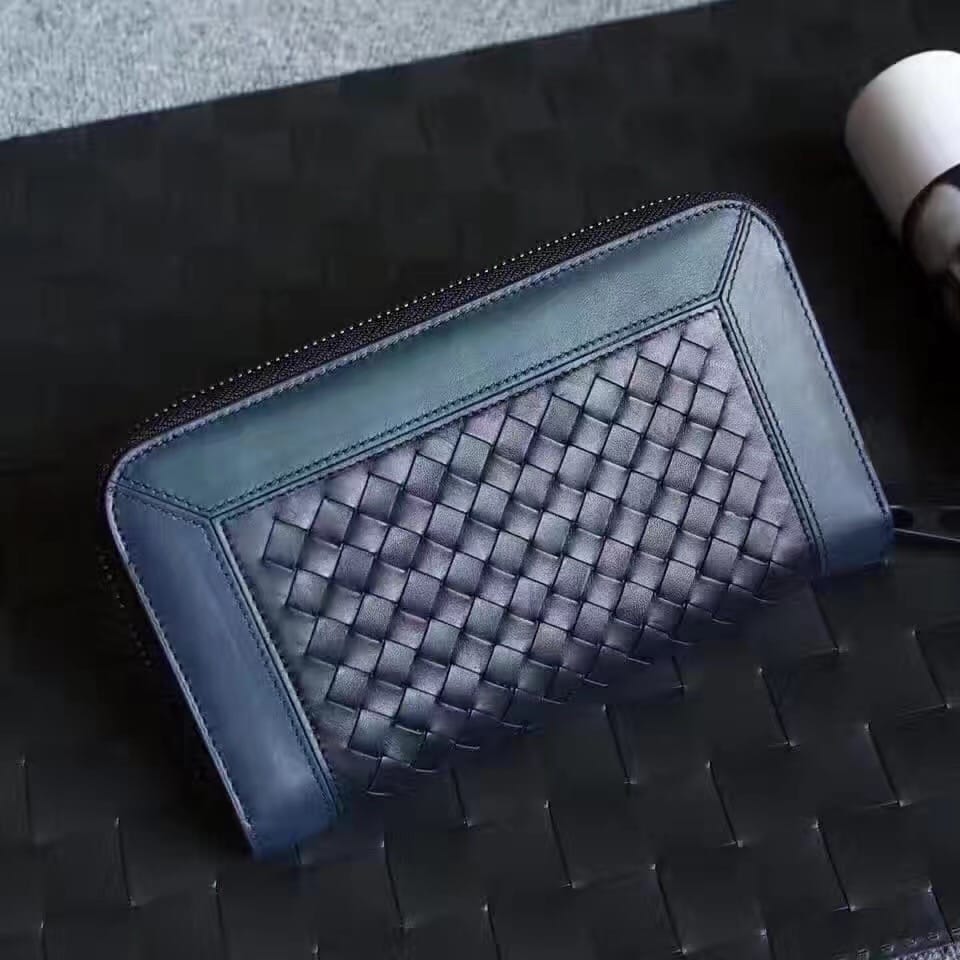 BV家 彩色胎牛皮 人工编织钱包 单拉链款