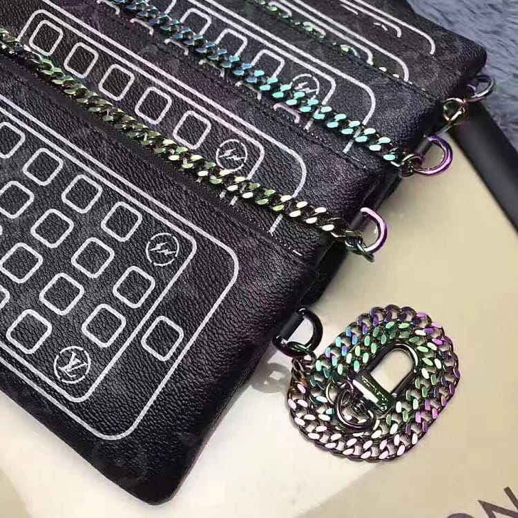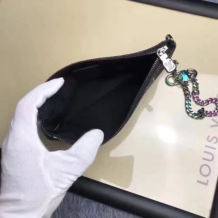 手机袋 钱袋 M64433此款与日本设计师藤原浩合作设计的手机袋融汇品牌传统元素——Monogram花纹——与现代造型 兼具时尚与动感风格 配有可拆卸包链 既可置于包内 亦可提于手中 以充满时尚感的方式完美携带Iphone爱机 size 20cm。