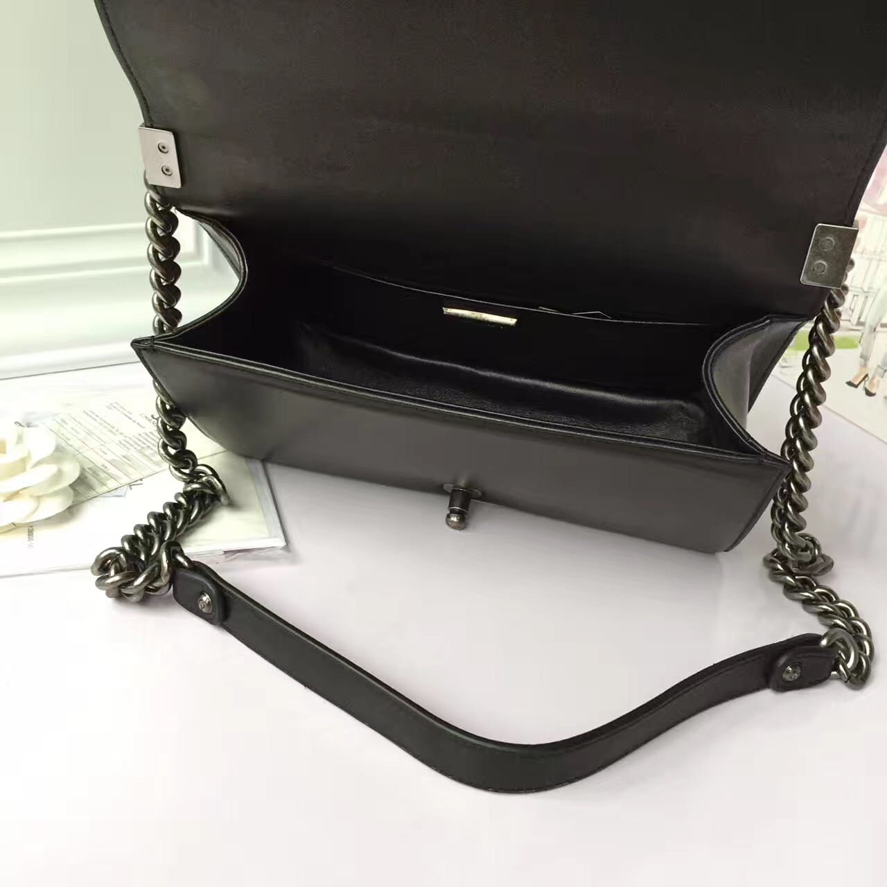 原单!61692水波纹配边!盥洗袋 进口水波纹配黑花,内部空
