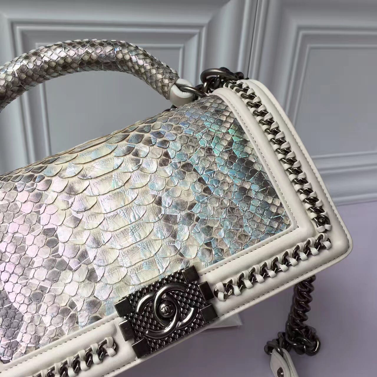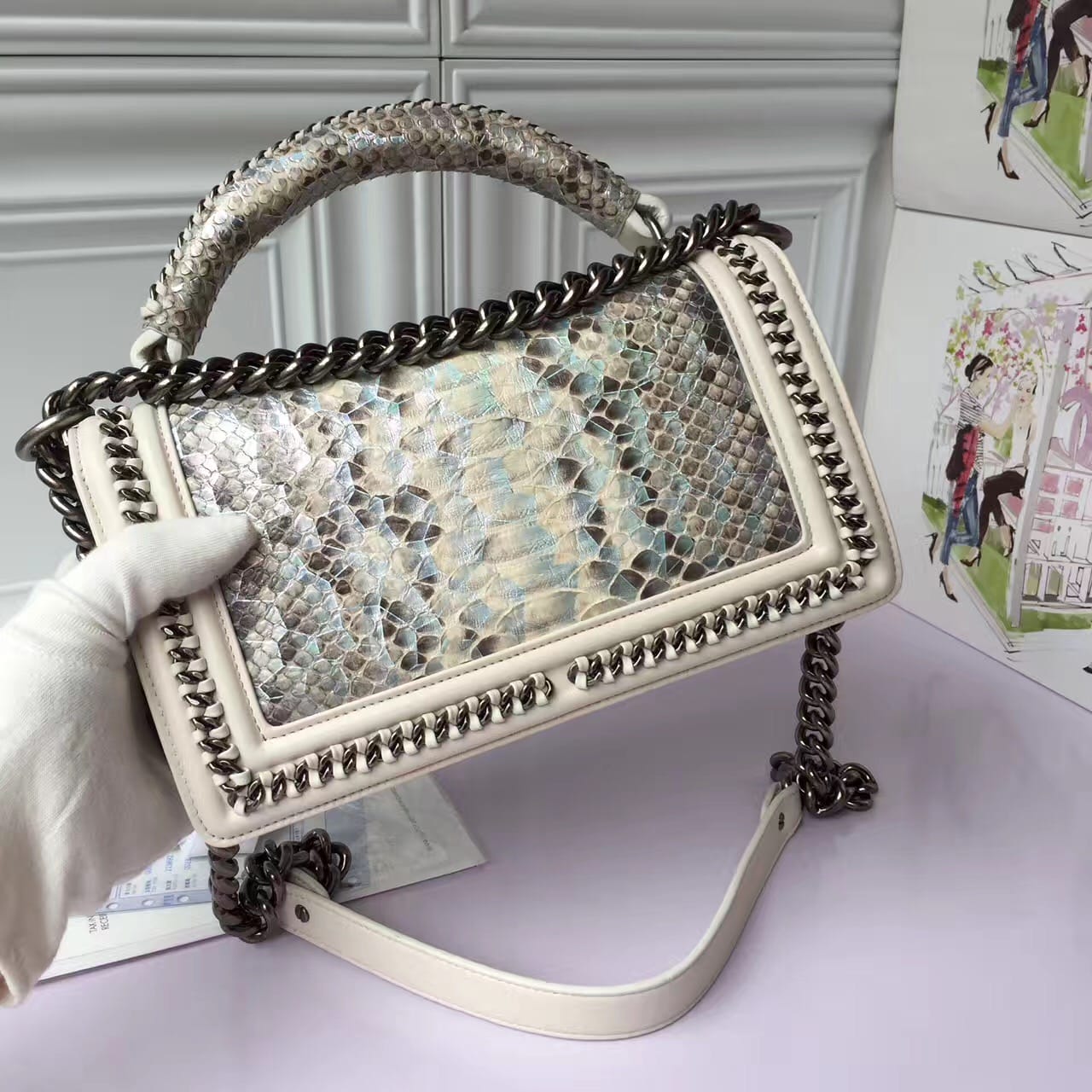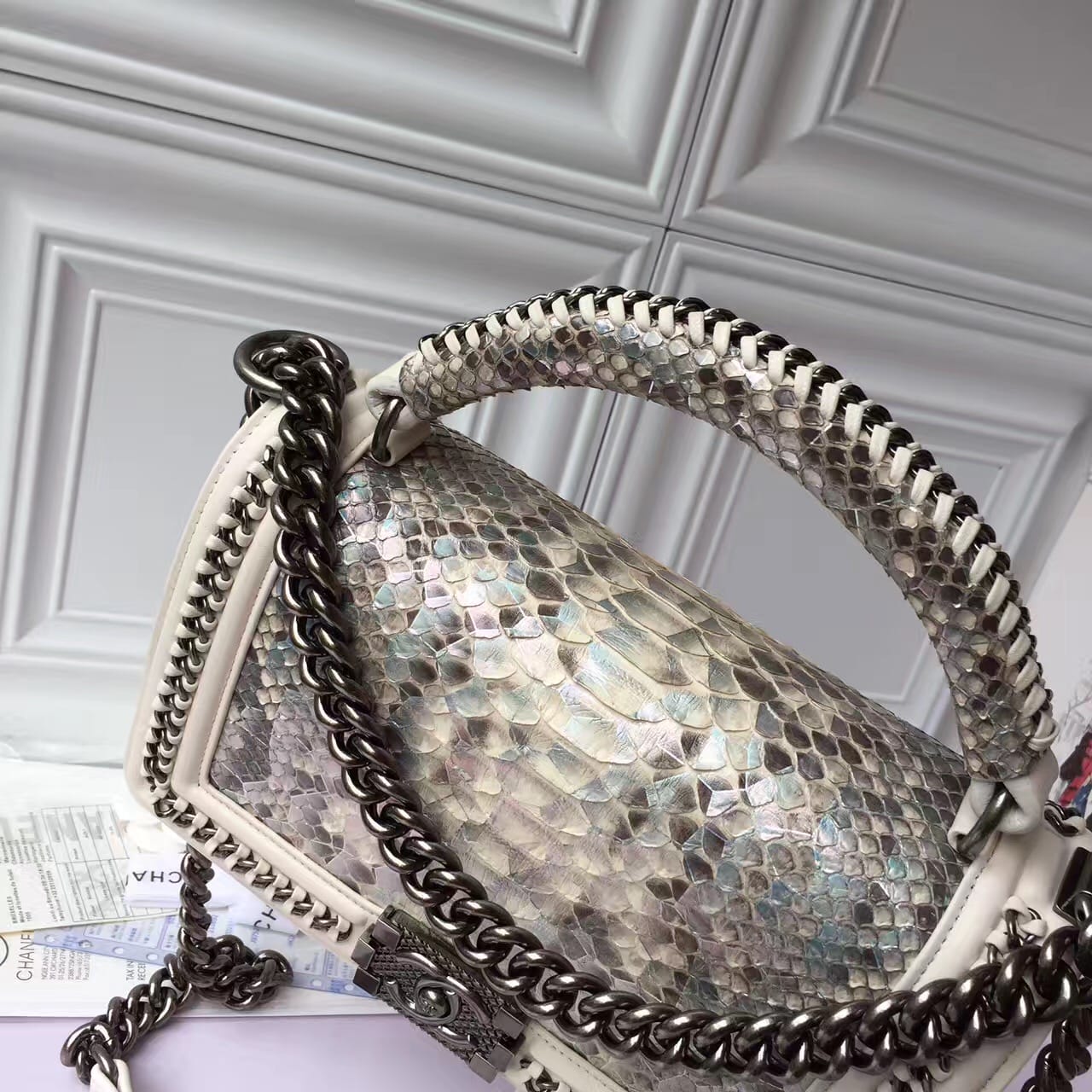 Chanel香奈儿蟒蛇皮萨尔茨堡系列出货非洲进口野生蟒蛇皮配羊皮内里进口古银五金,和精美编织搭配,精致的做工 严谨的工序无与伦比的搭配 每一个包的蛇皮都是精心细选 每一个包都是经过上百道工序细心才能完成的,尺寸:25cm!