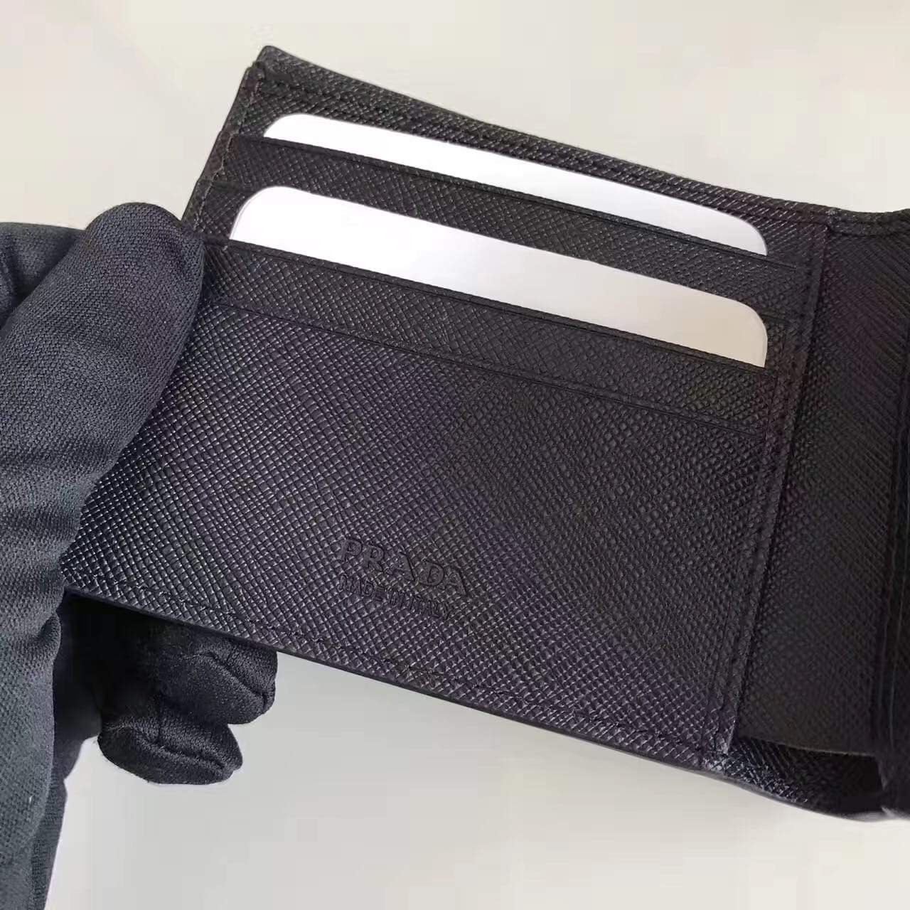 P家??十字纹卡夹,深蓝色,配三个卡位夹层,可放置多张卡片,