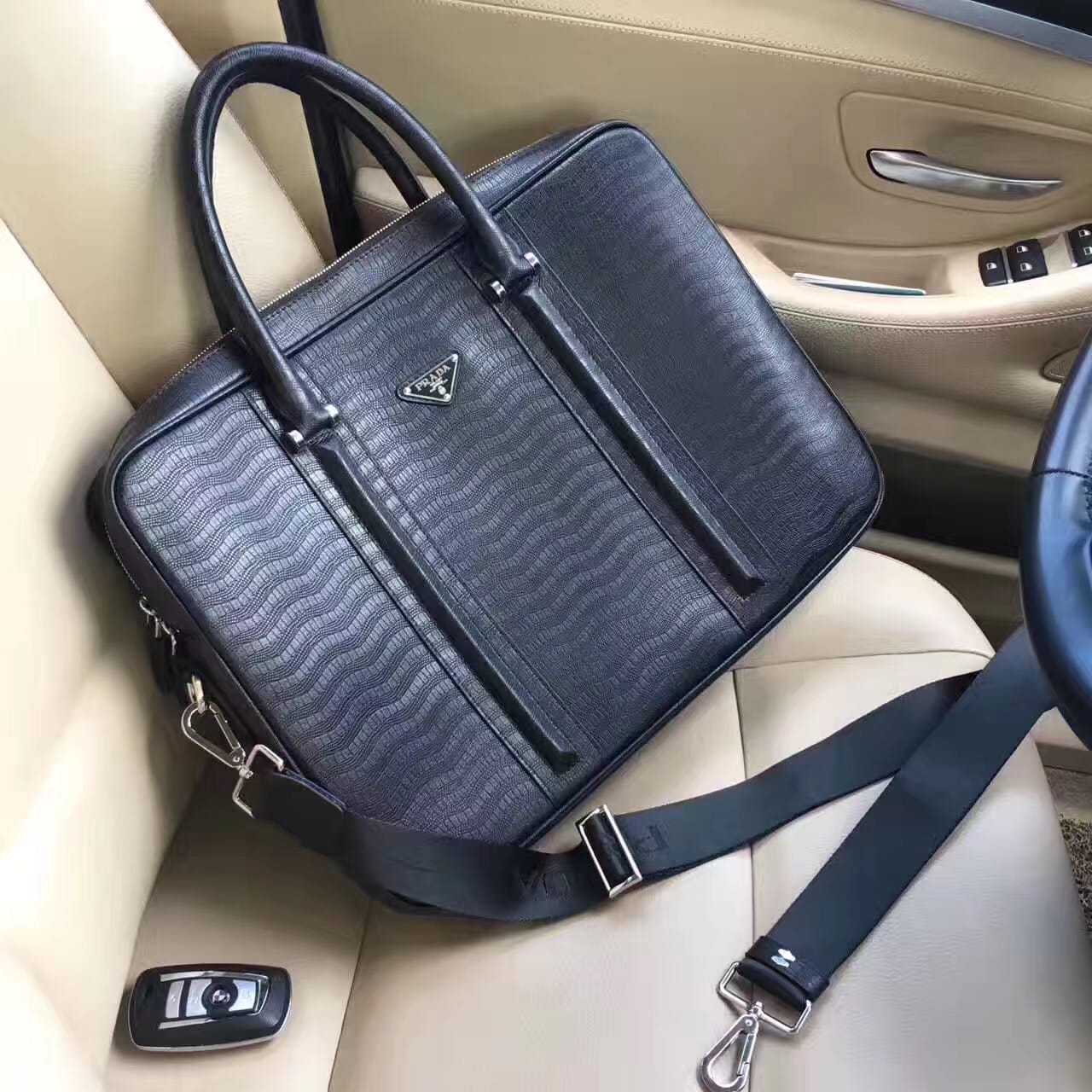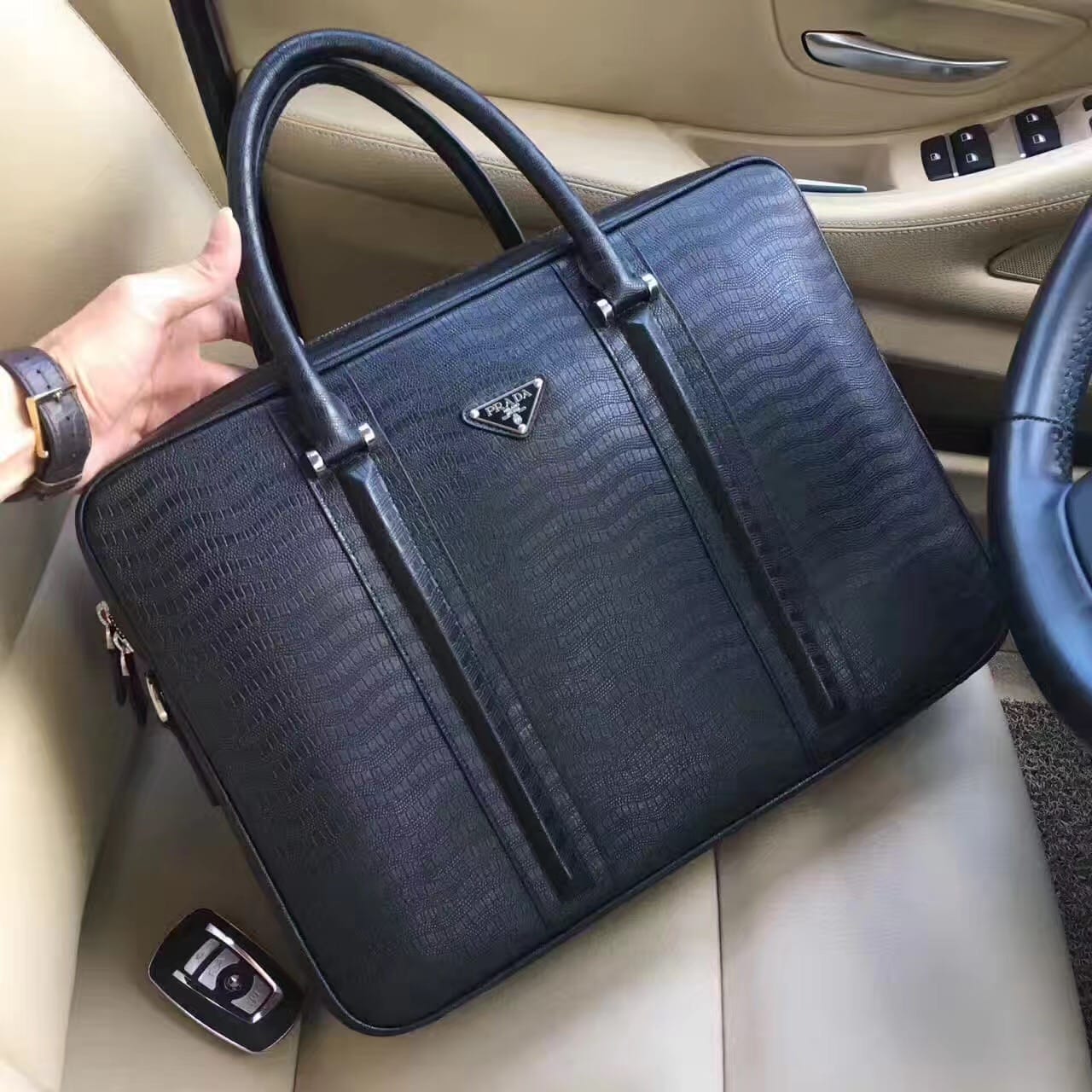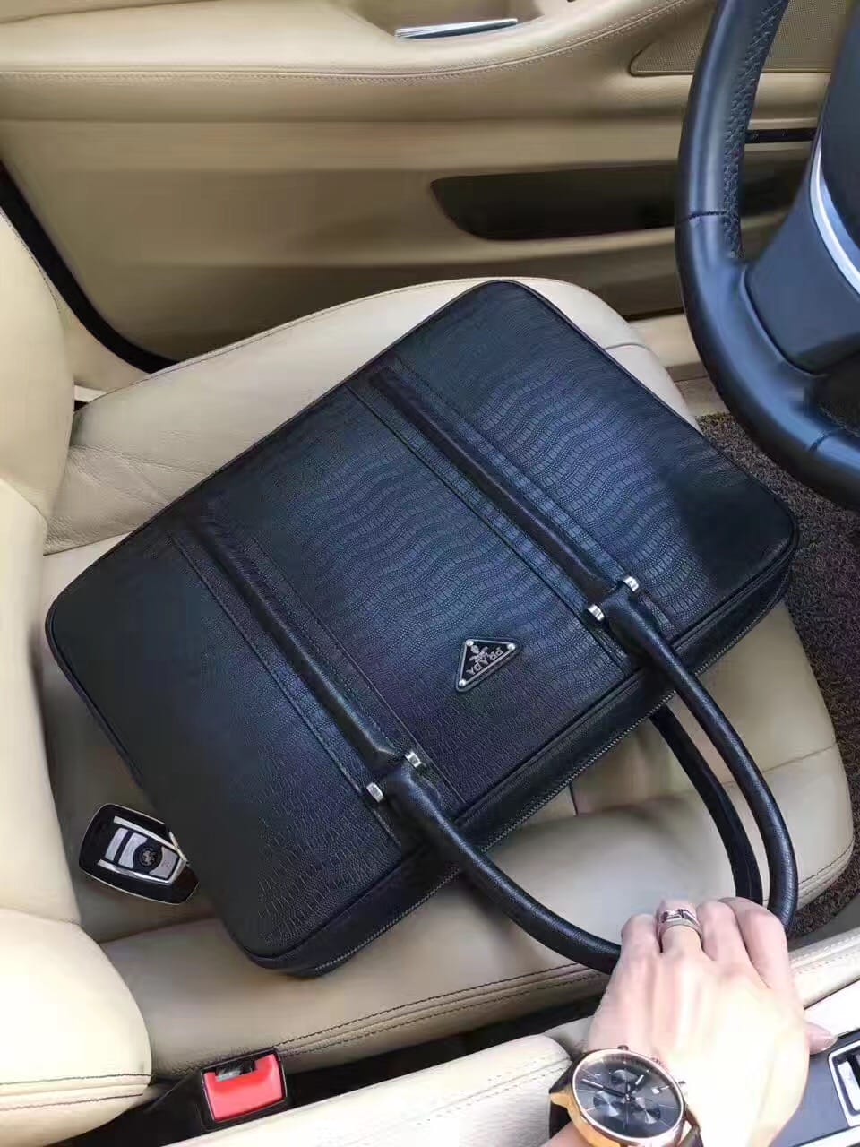 高端新款 ?原版皮!【普,拉达】欧洲水货,男包手提包,重金打