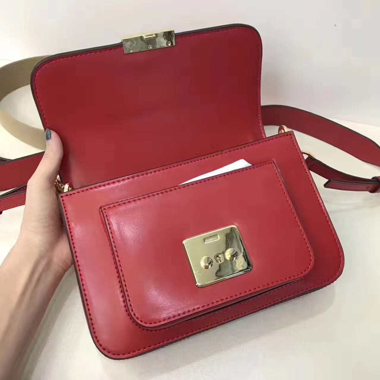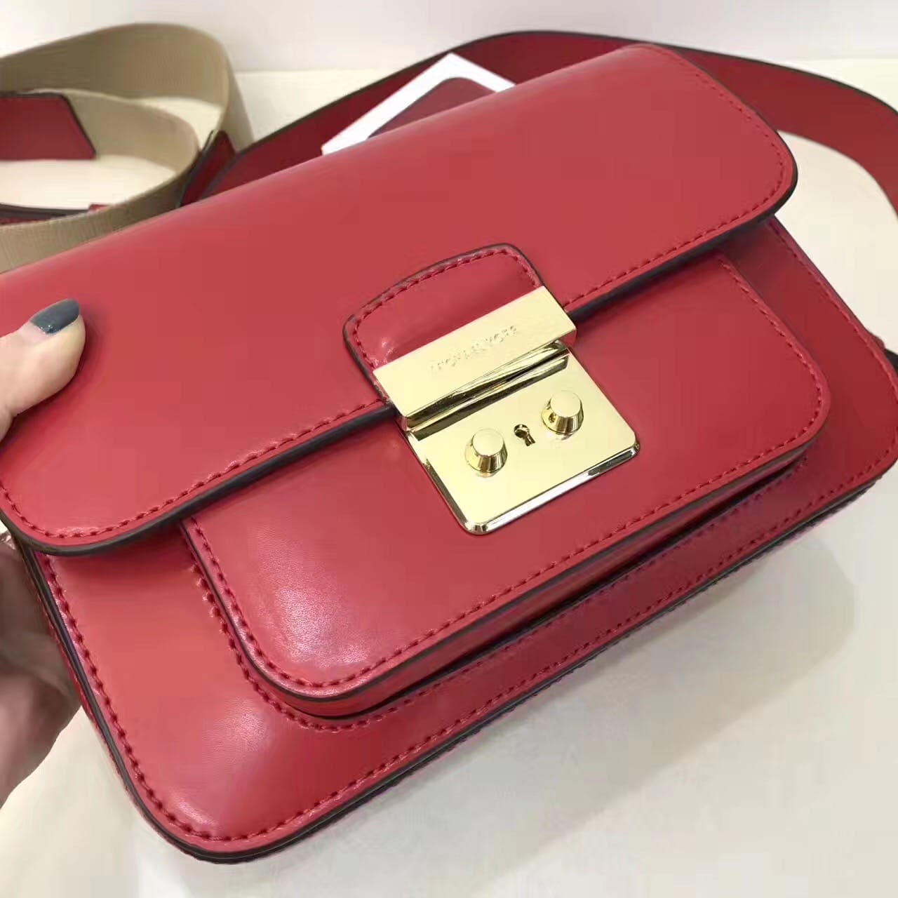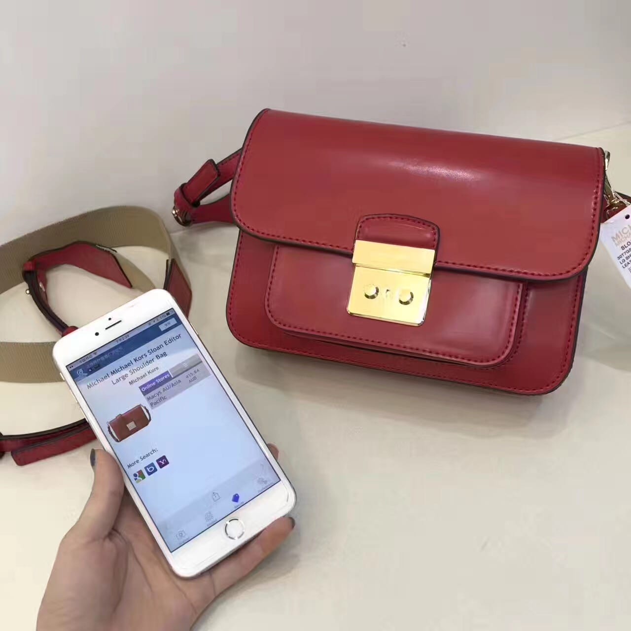 红色【顶级货】2017MK新款杨幂同款sloan链条小方包
