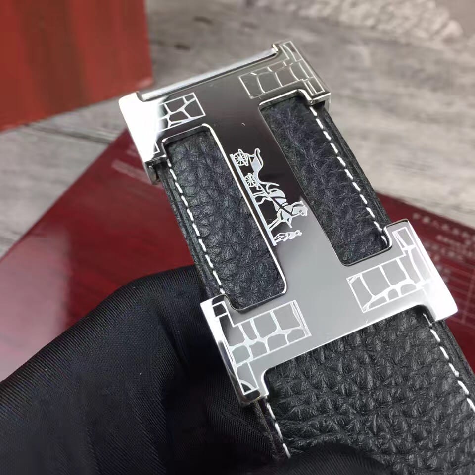 爱马仕新款花纹雕刻纯钢扣,不掉色,原产双面头层荔枝纹牛皮,