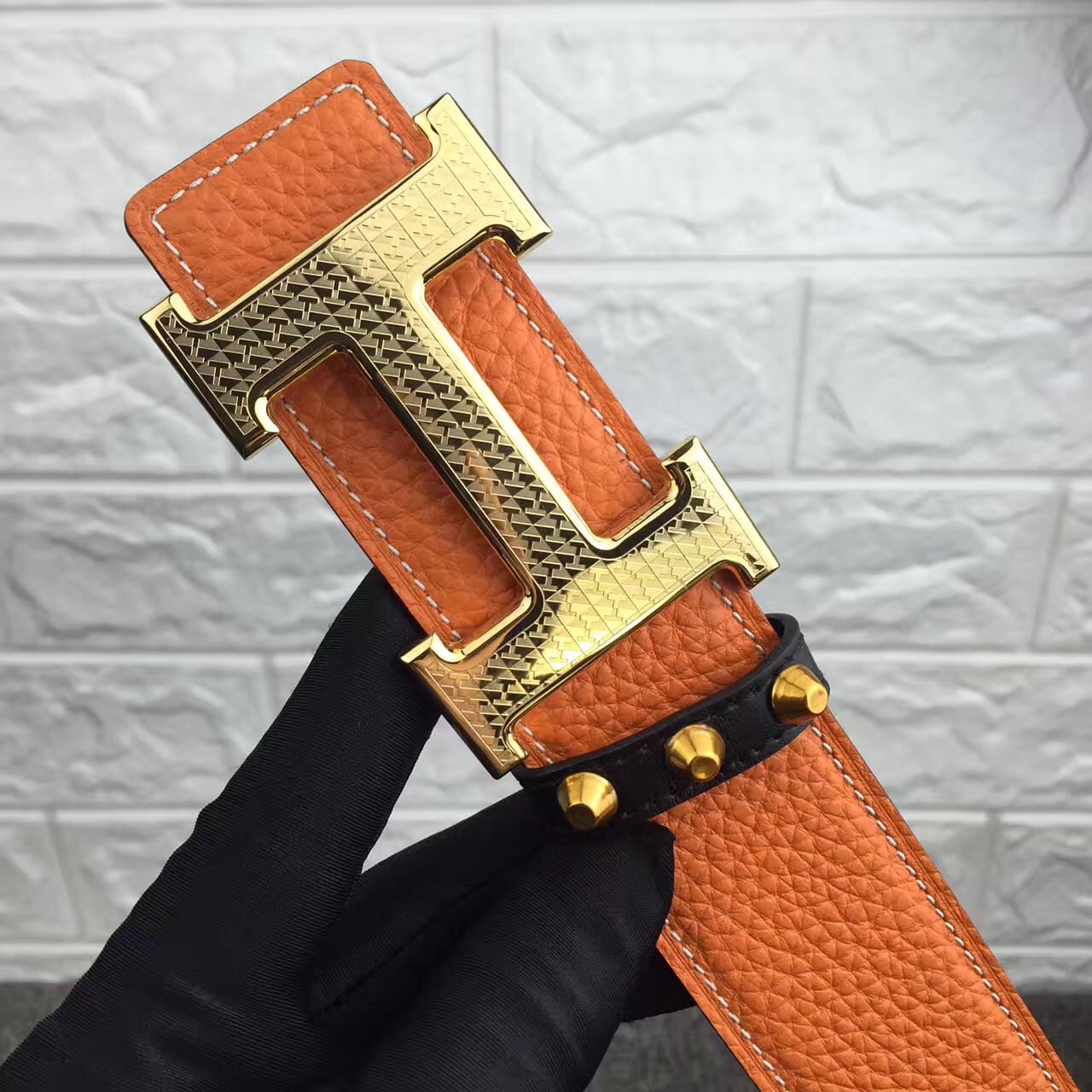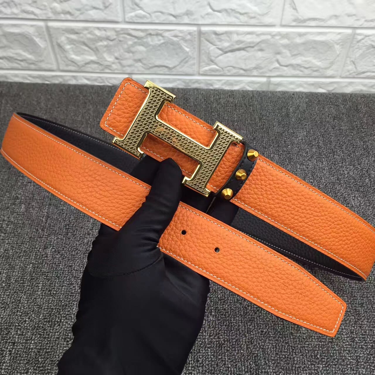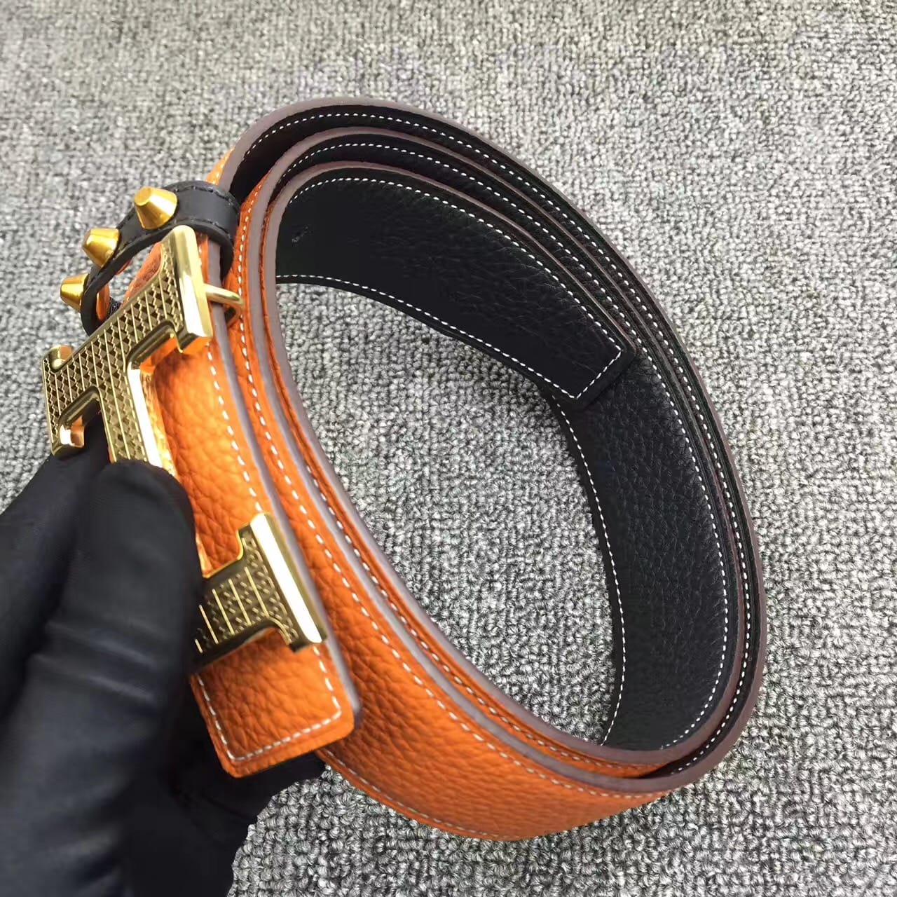 爱马仕新款花纹雕刻纯钢扣,不掉色,原产双面头层荔枝纹牛皮,高