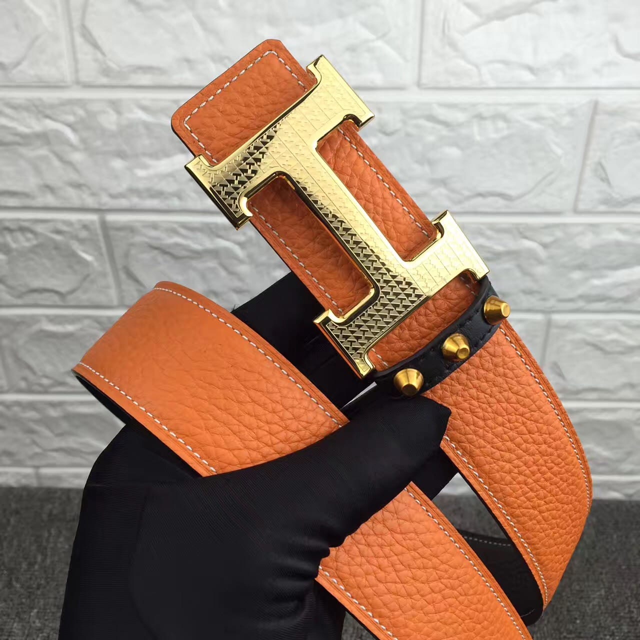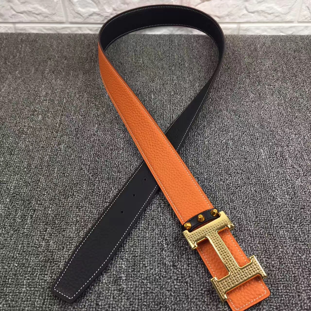 爱马仕新款花纹雕刻纯钢扣,不掉色,原产双面头层荔枝纹牛皮,