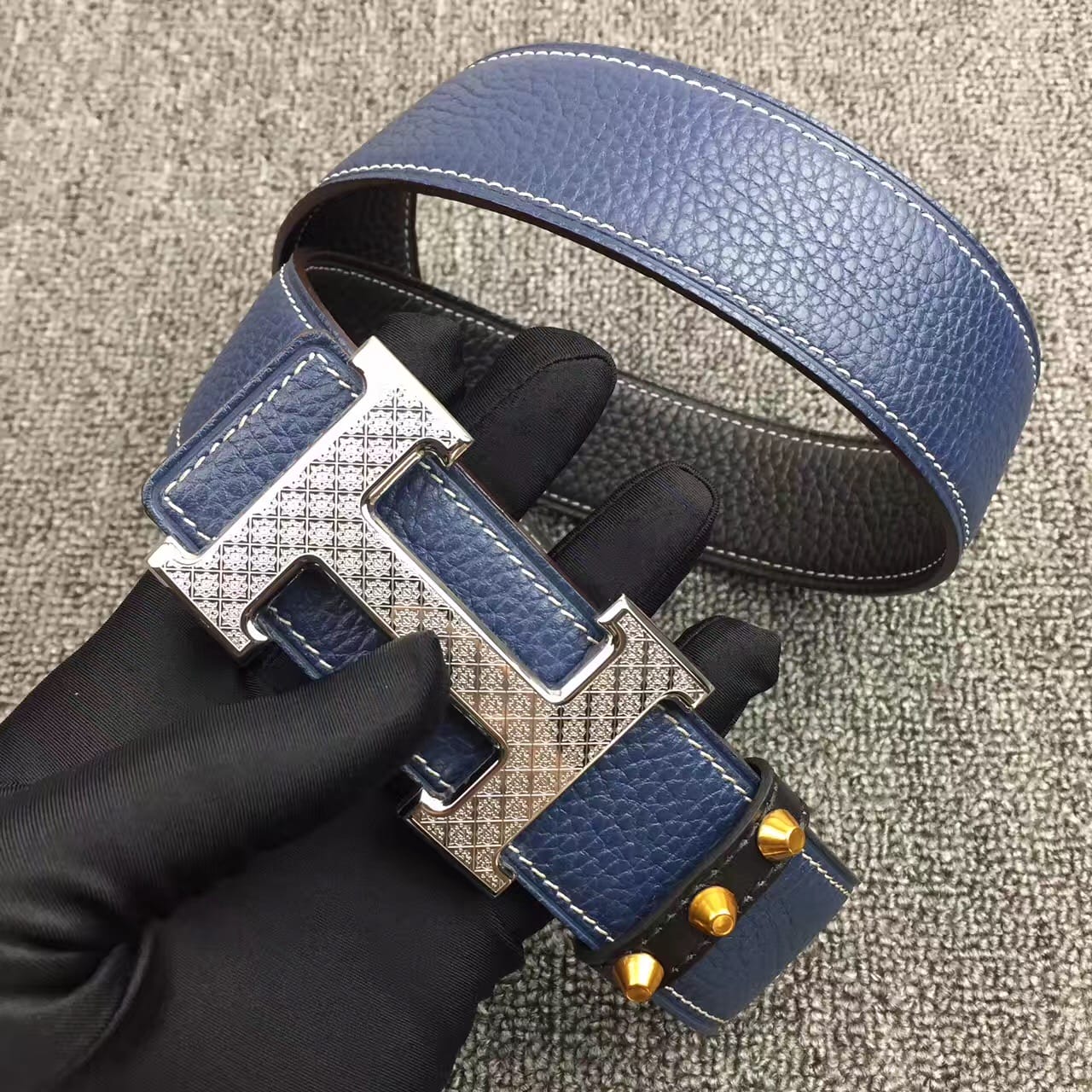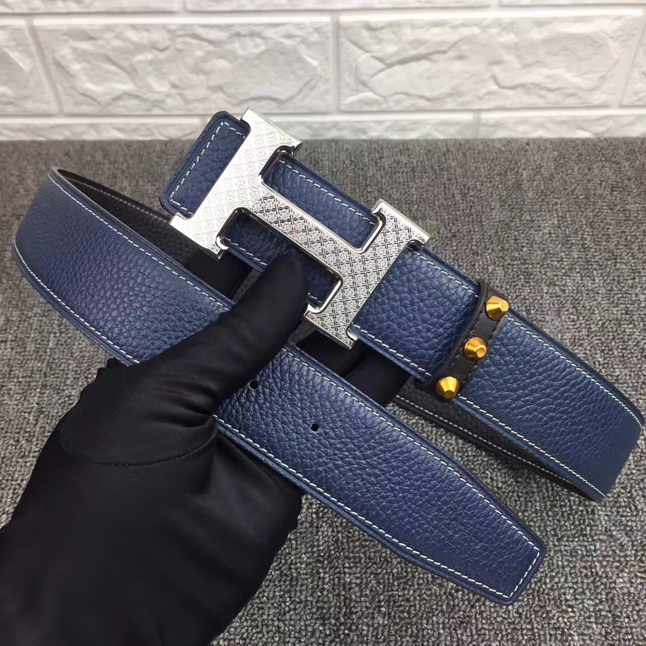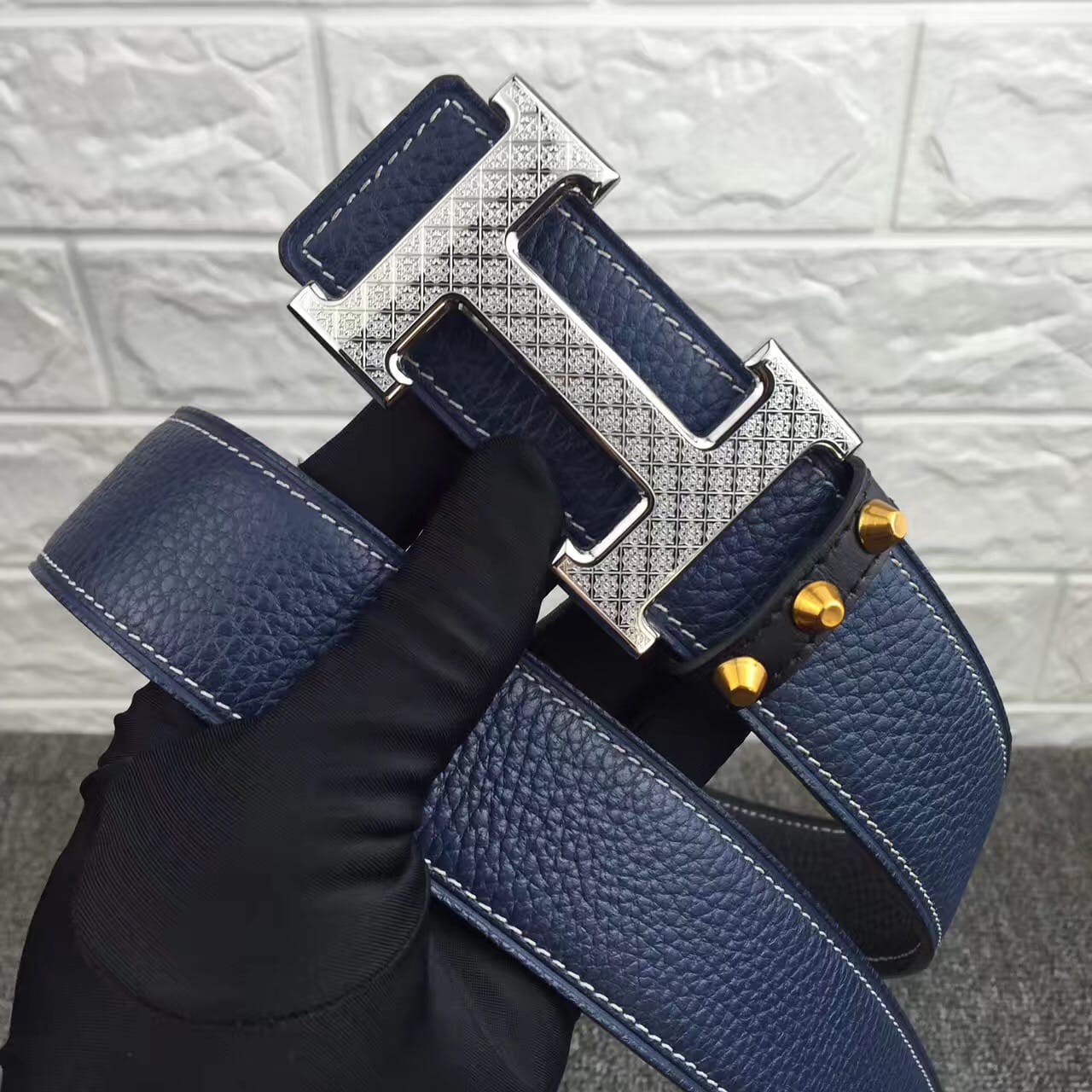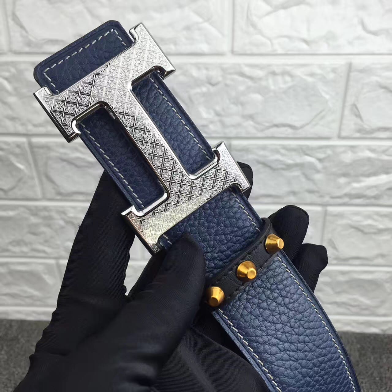 爱马仕新款花纹雕刻纯钢扣,不掉色,原产双面头层荔枝纹牛皮,