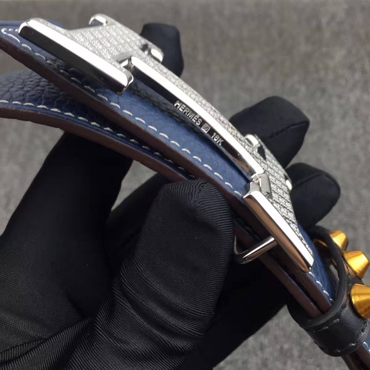 爱马仕新款花纹雕刻纯钢扣,不掉色,原产头层牛皮压鳄鱼纹,高
