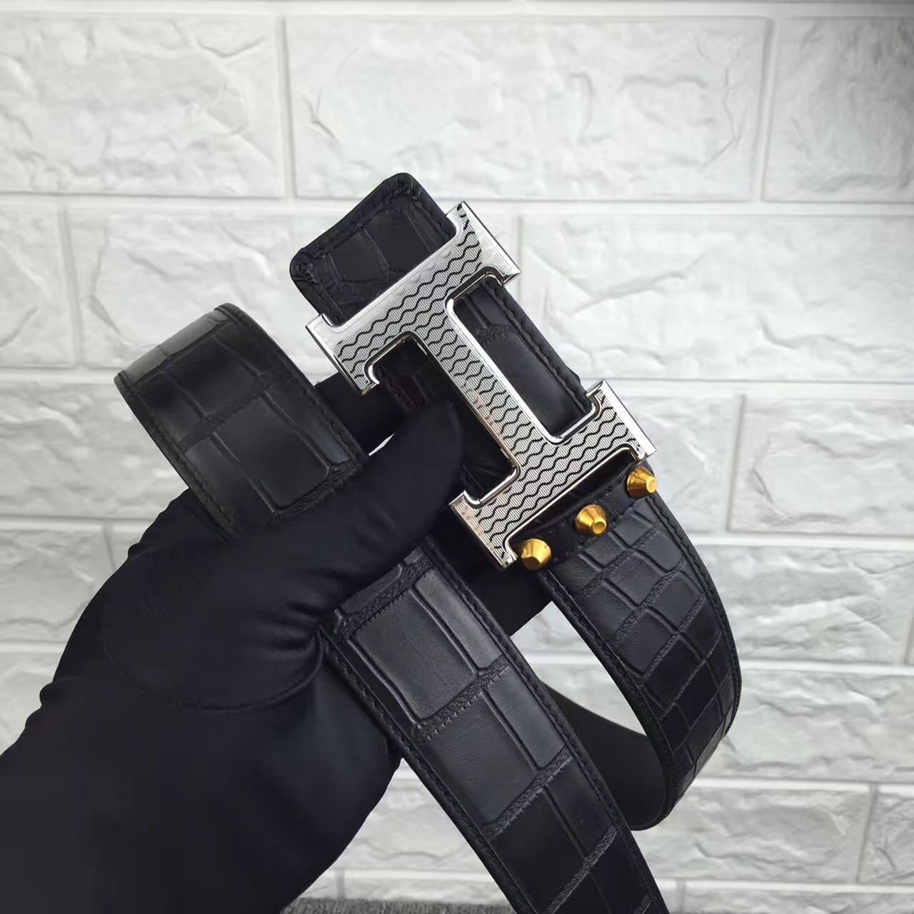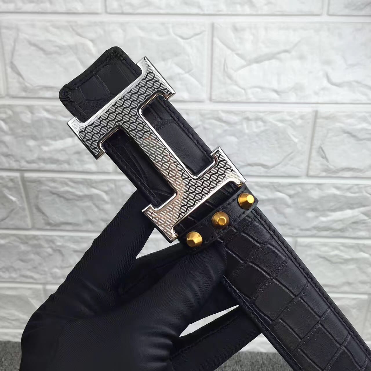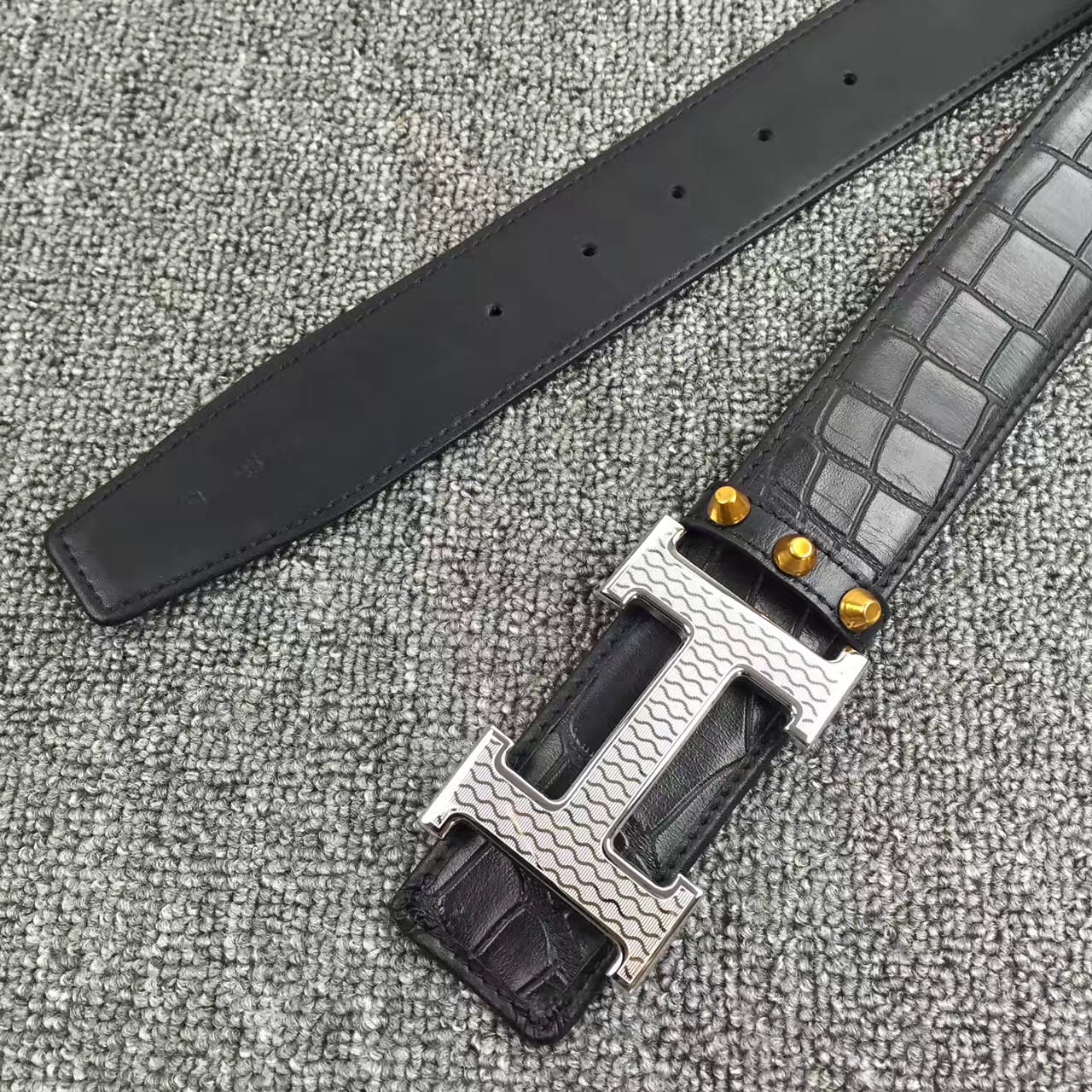 爱马仕新款花纹雕刻纯钢扣,不掉色,原产头层牛皮压鳄鱼纹,高