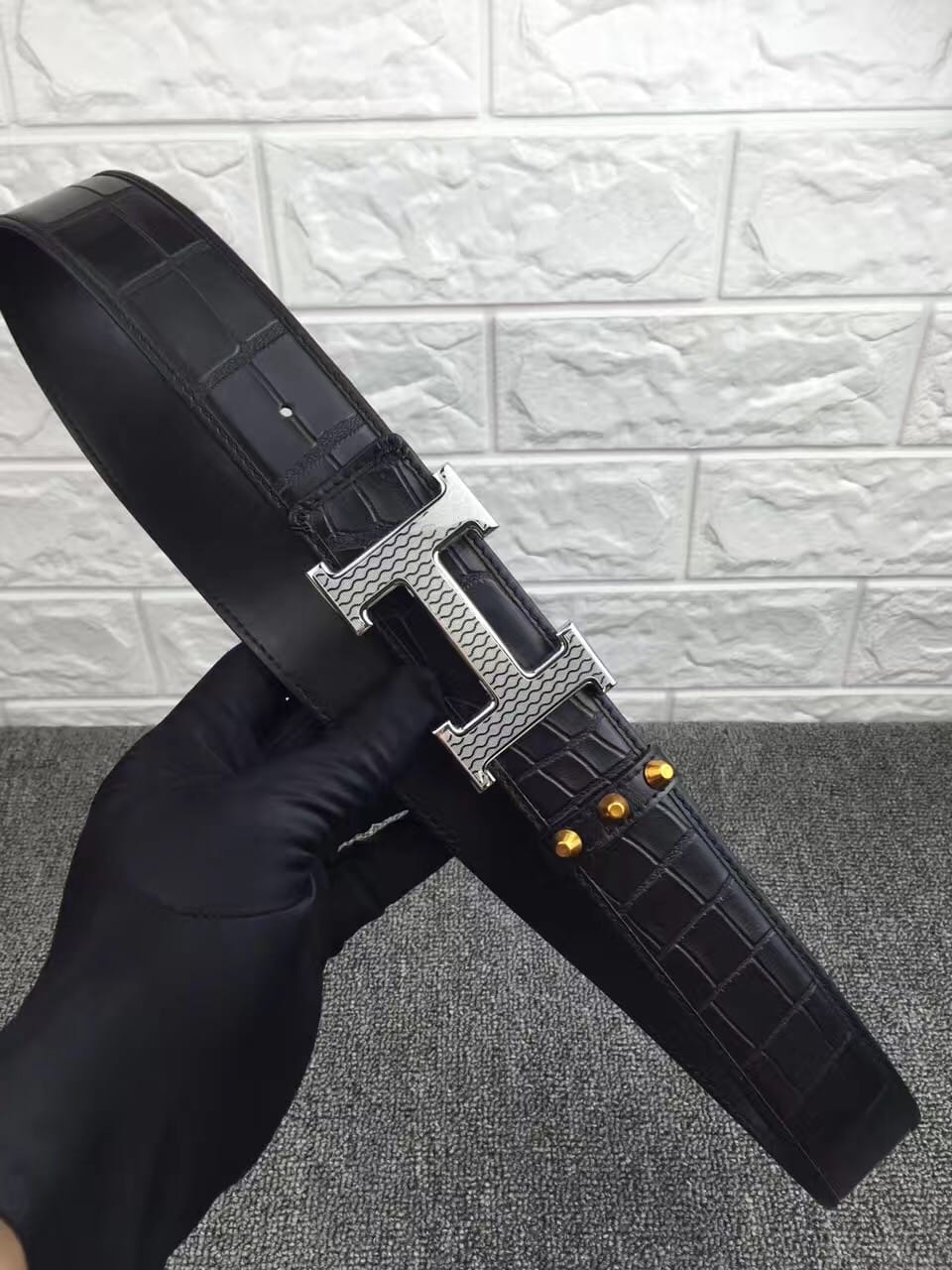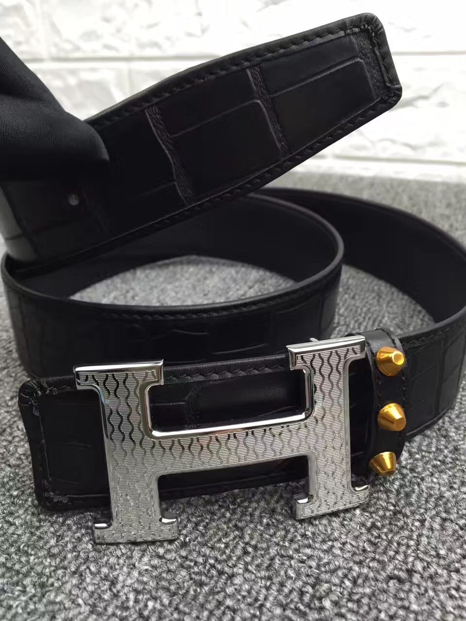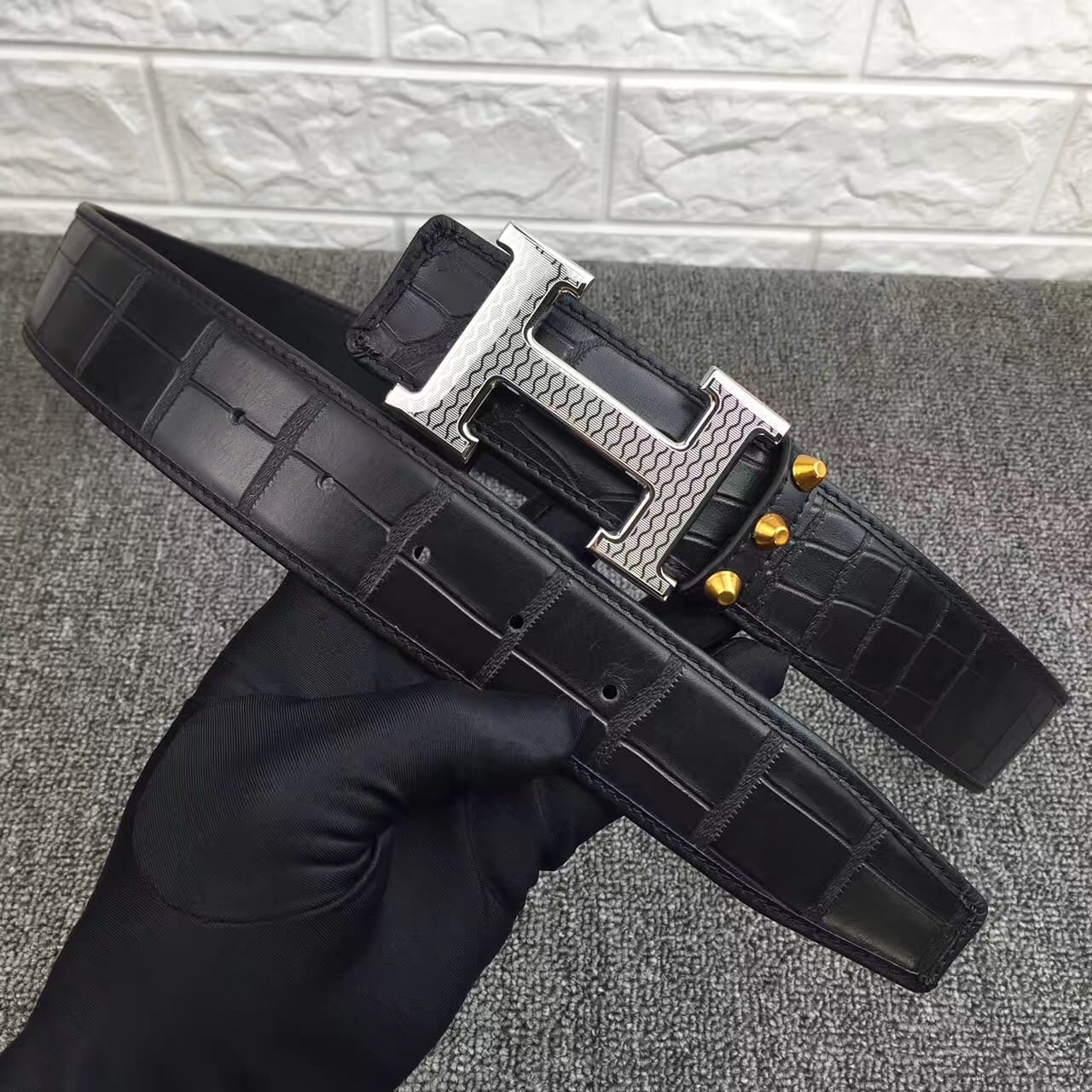 爱马仕新款花纹雕刻纯钢扣,不掉色,原产头层牛皮压鳄鱼纹,高
