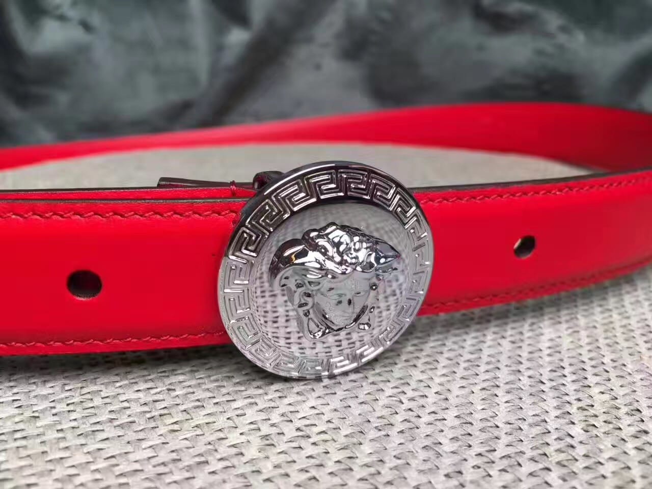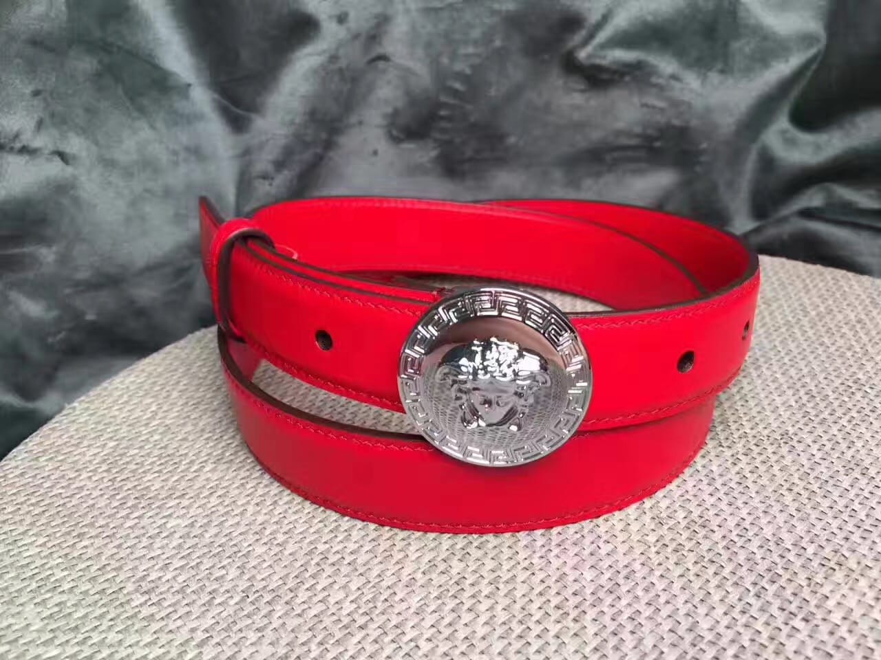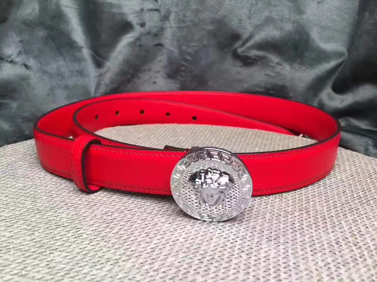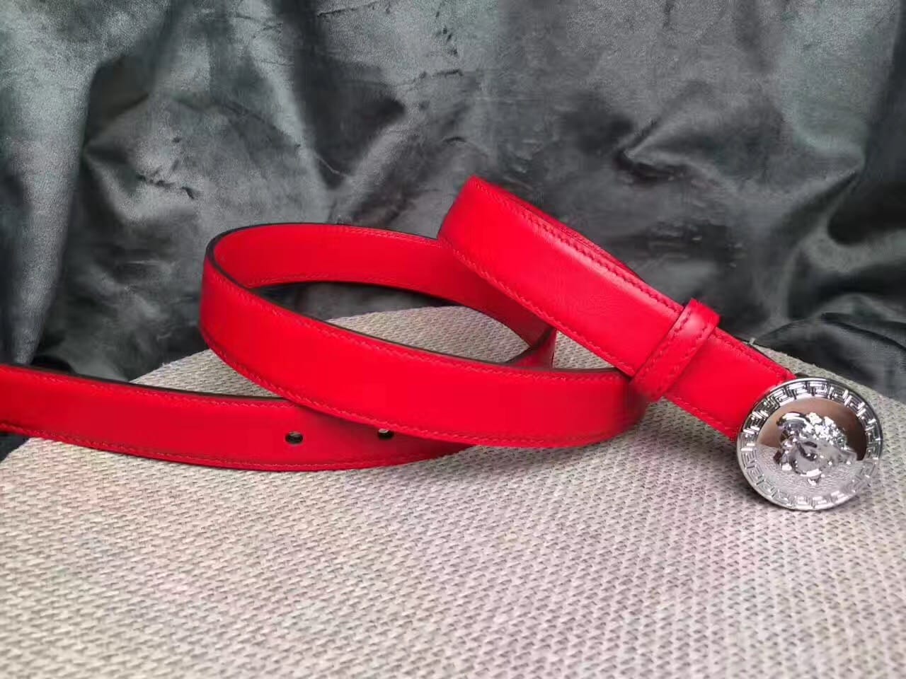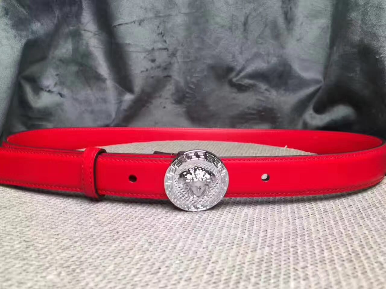 范思哲 Versace 美杜莎圆形扣头 女士红色小牛皮腰带