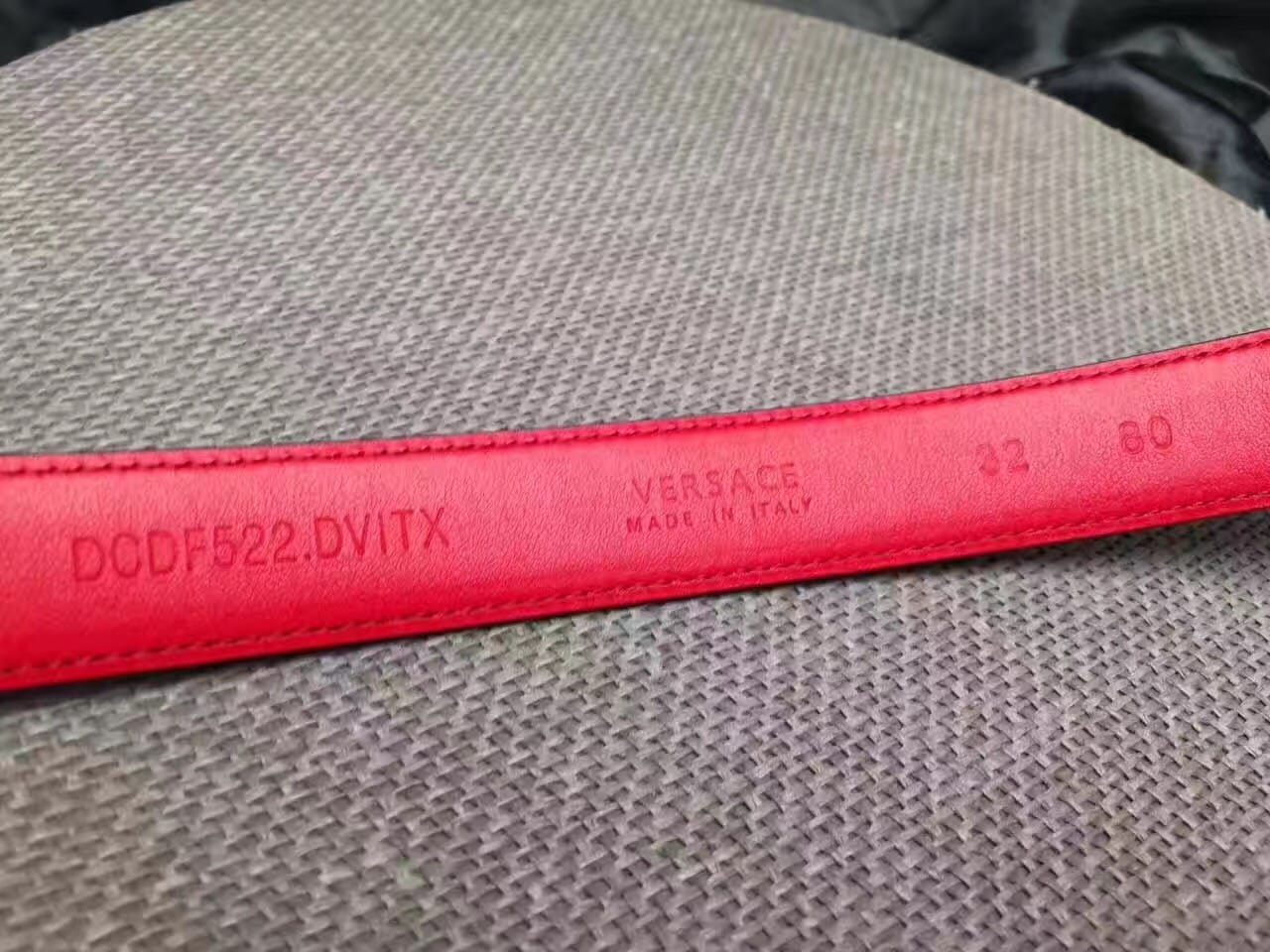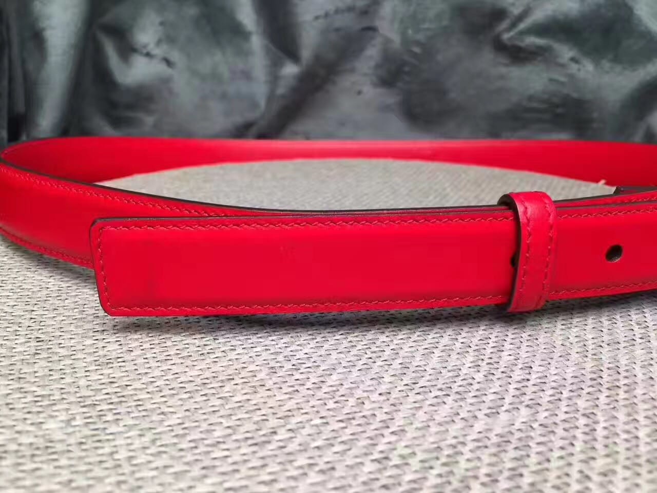 范思哲双面进口面料小牛皮 枚红色女士腰带