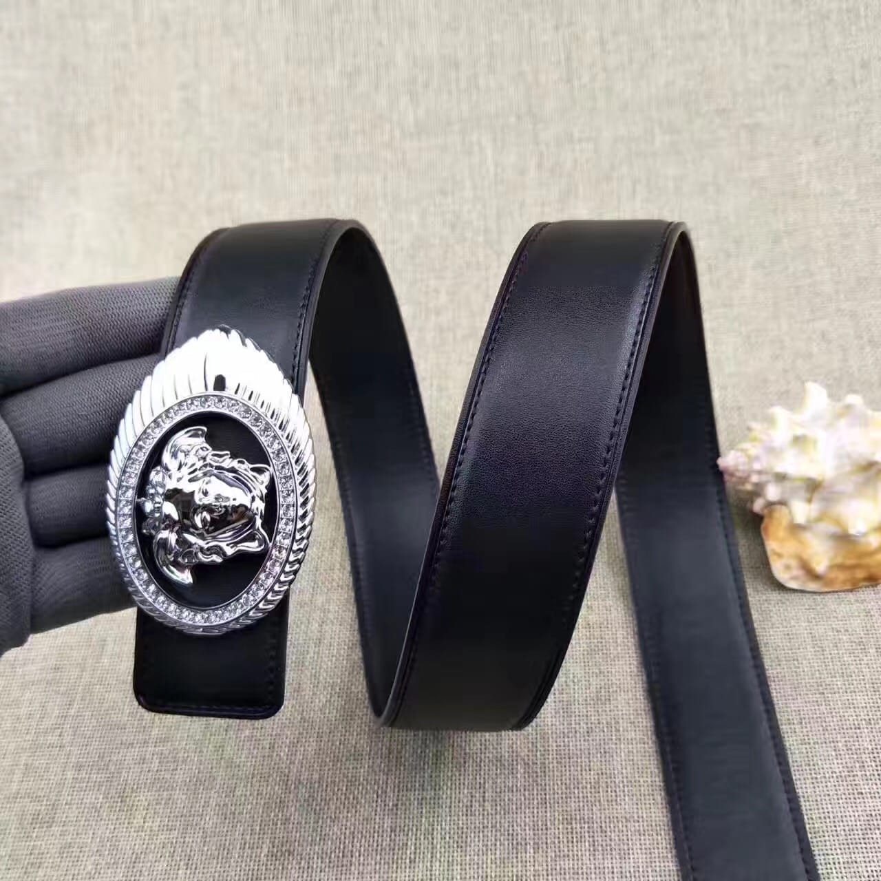 范思哲 美杜莎银色头像新款扣头 男士腰带