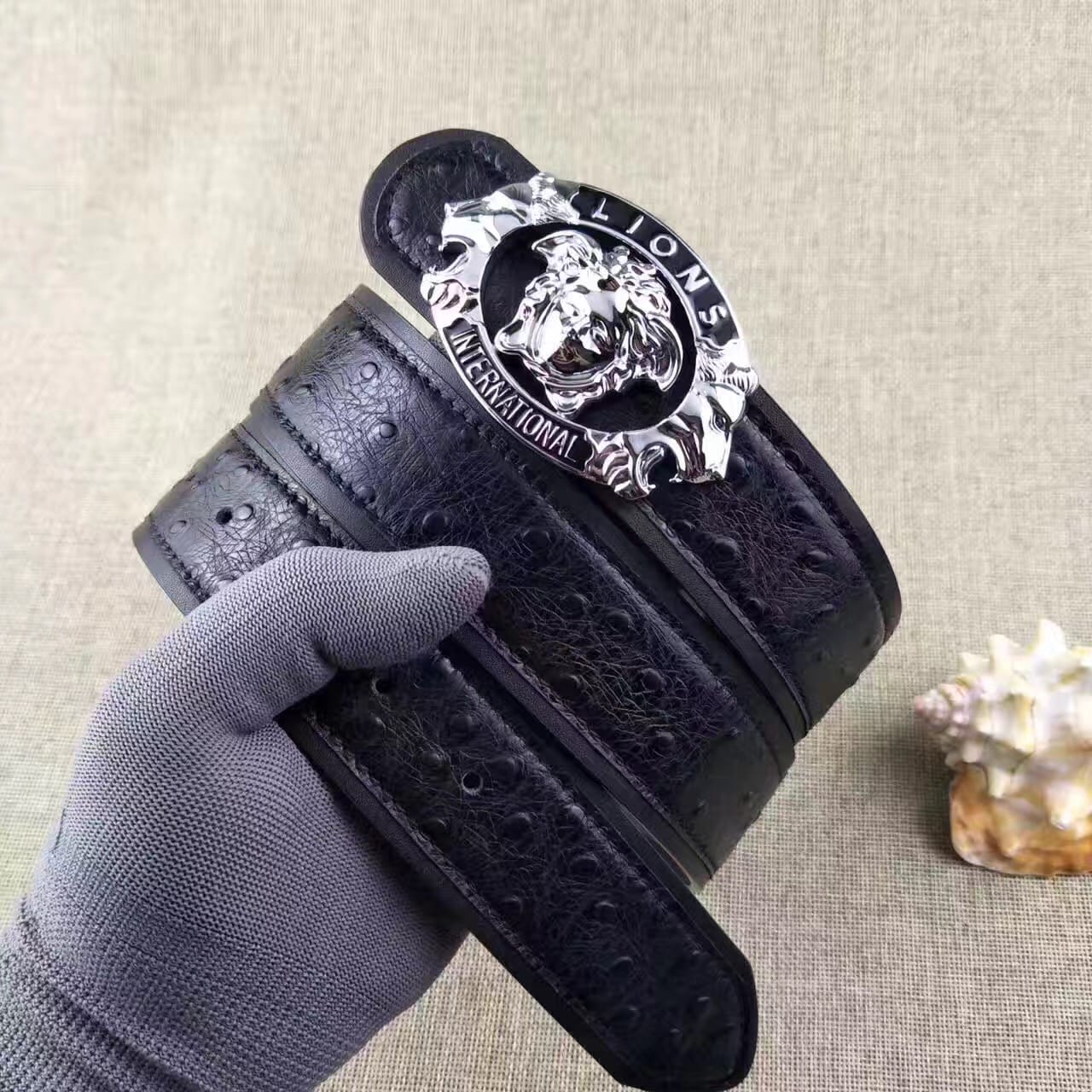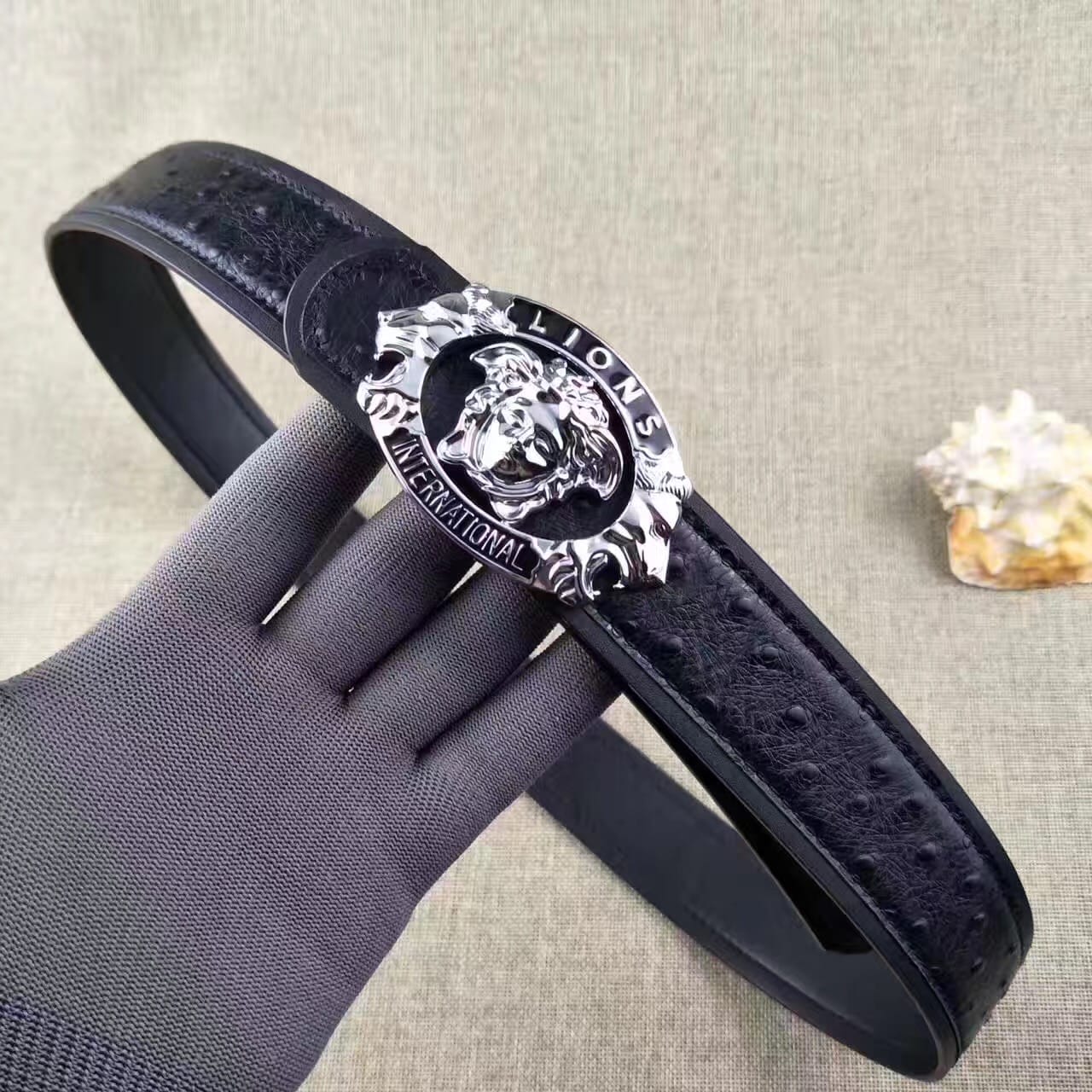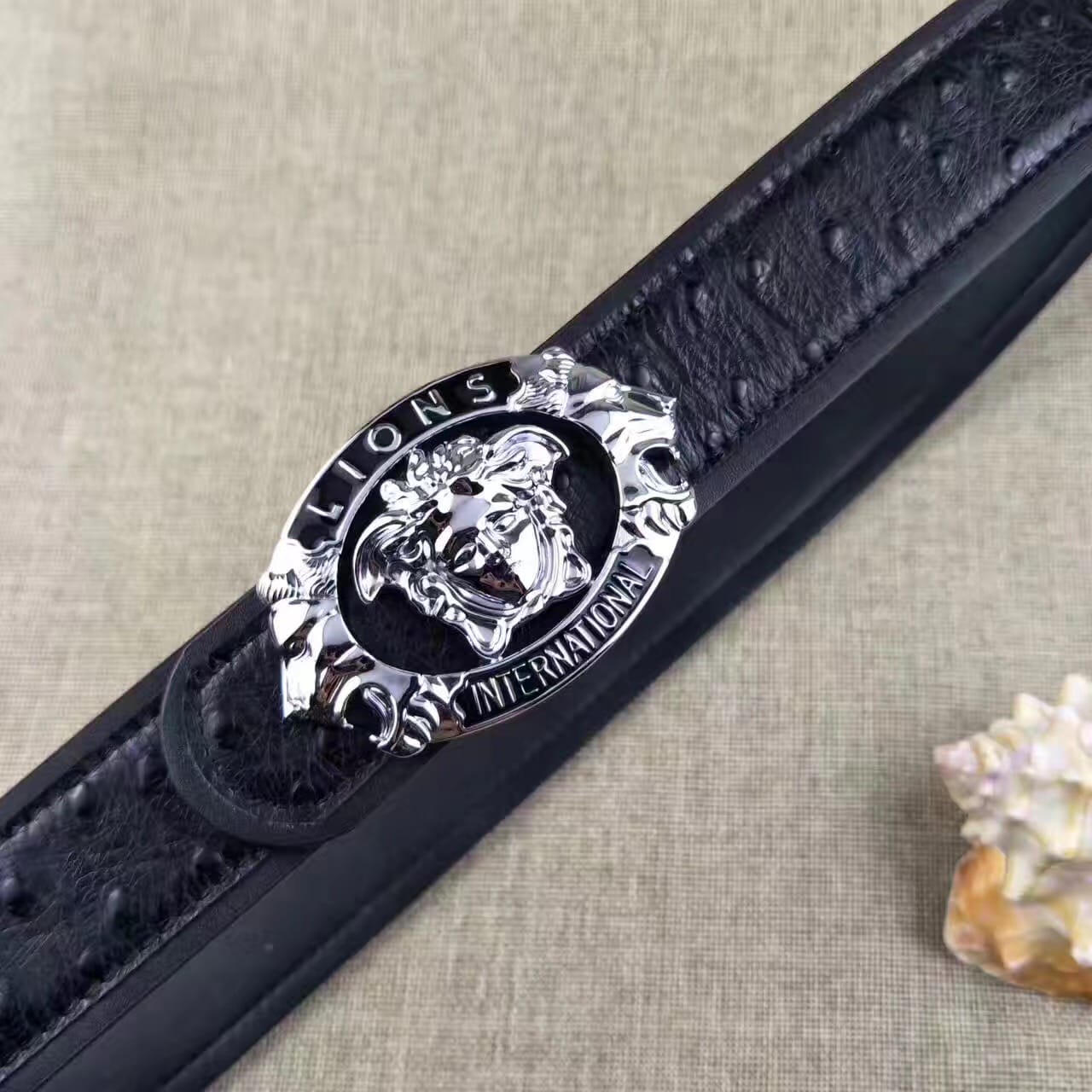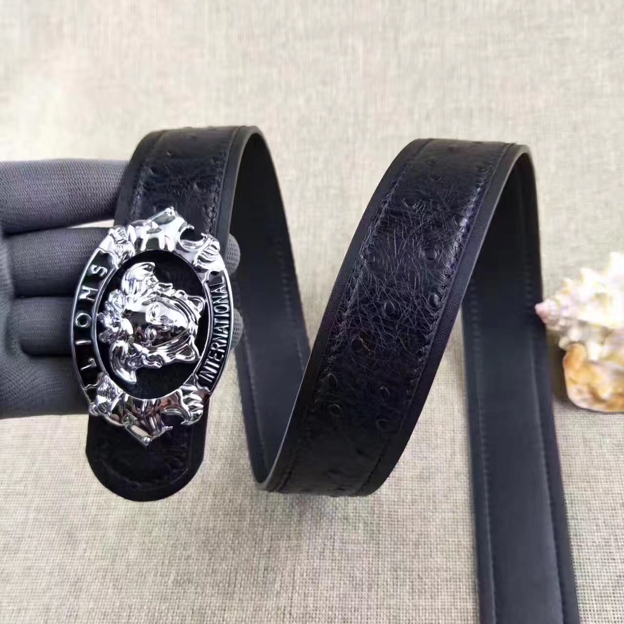 范思哲新款 黑色鸵鸟纹牛皮腰带