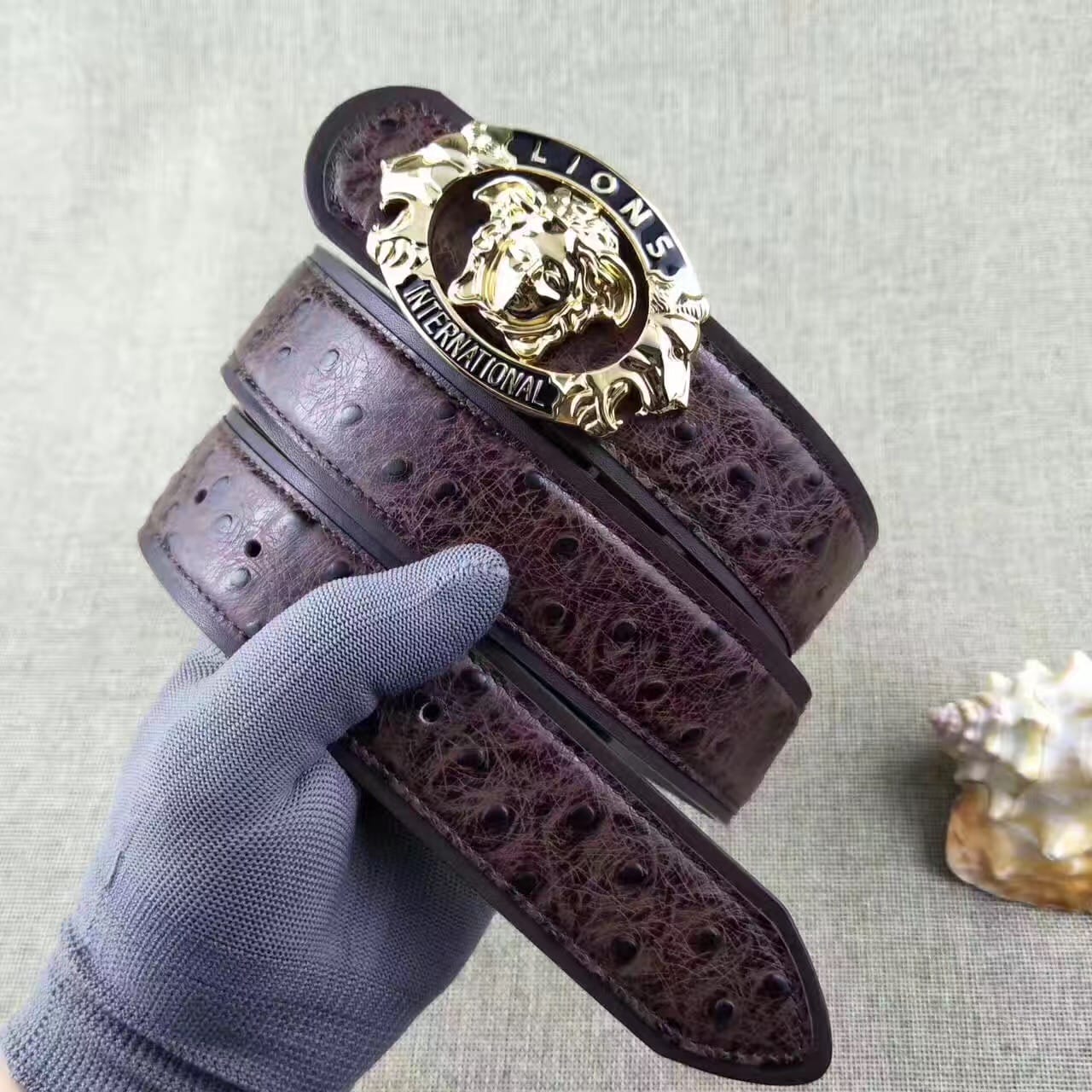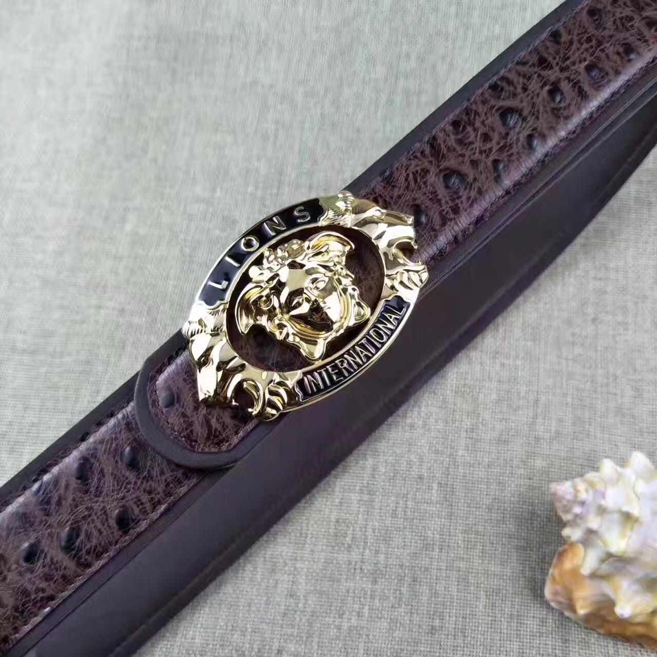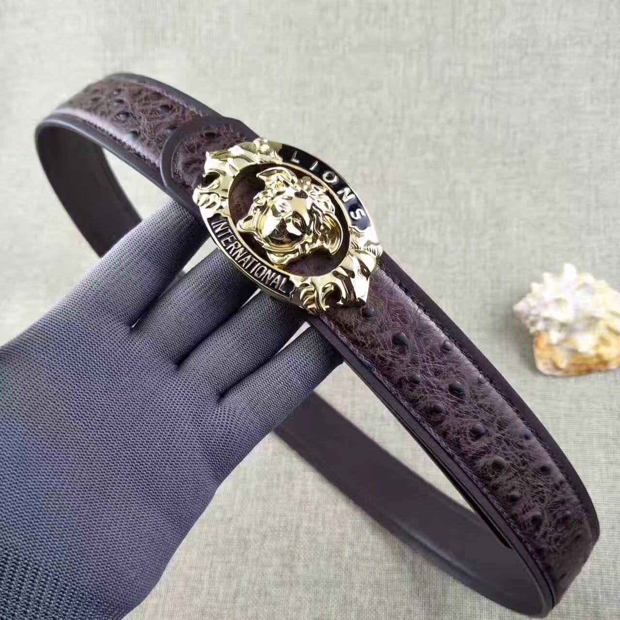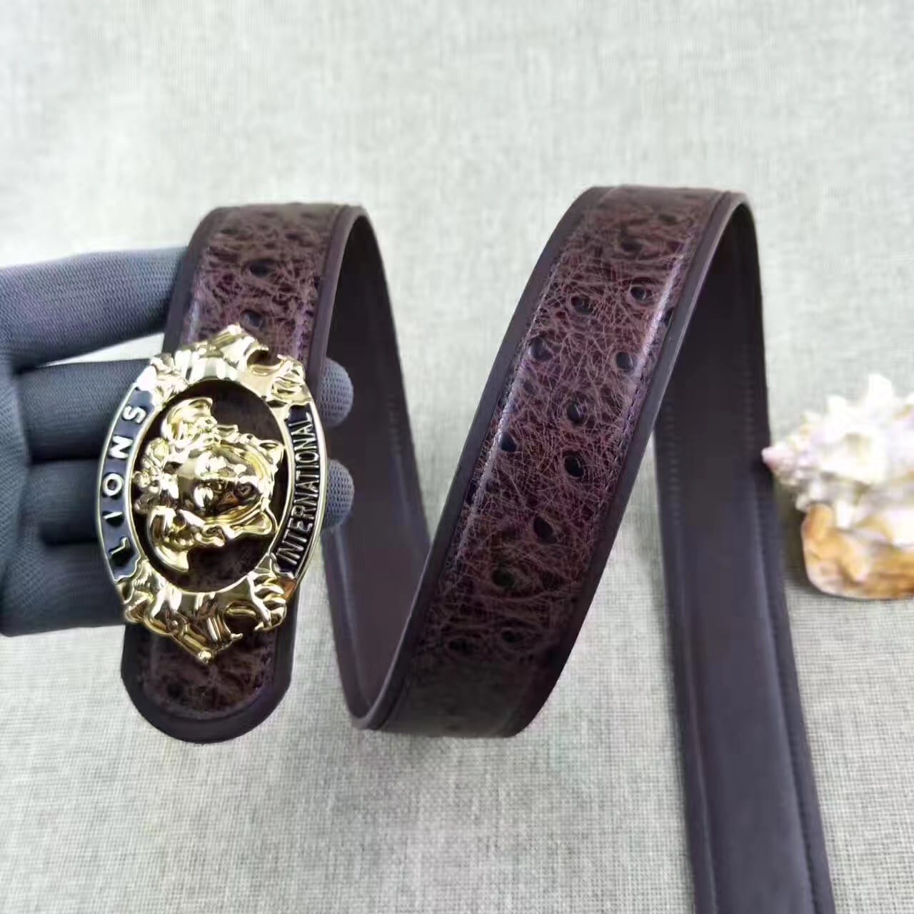 范思哲新款 棕色 鸵鸟纹牛皮腰带