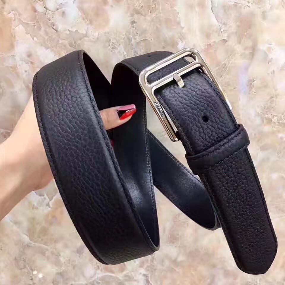 杰尼亚男士腰带 黑色牛皮压花 黑色Z字扣头 尽显低调奢华