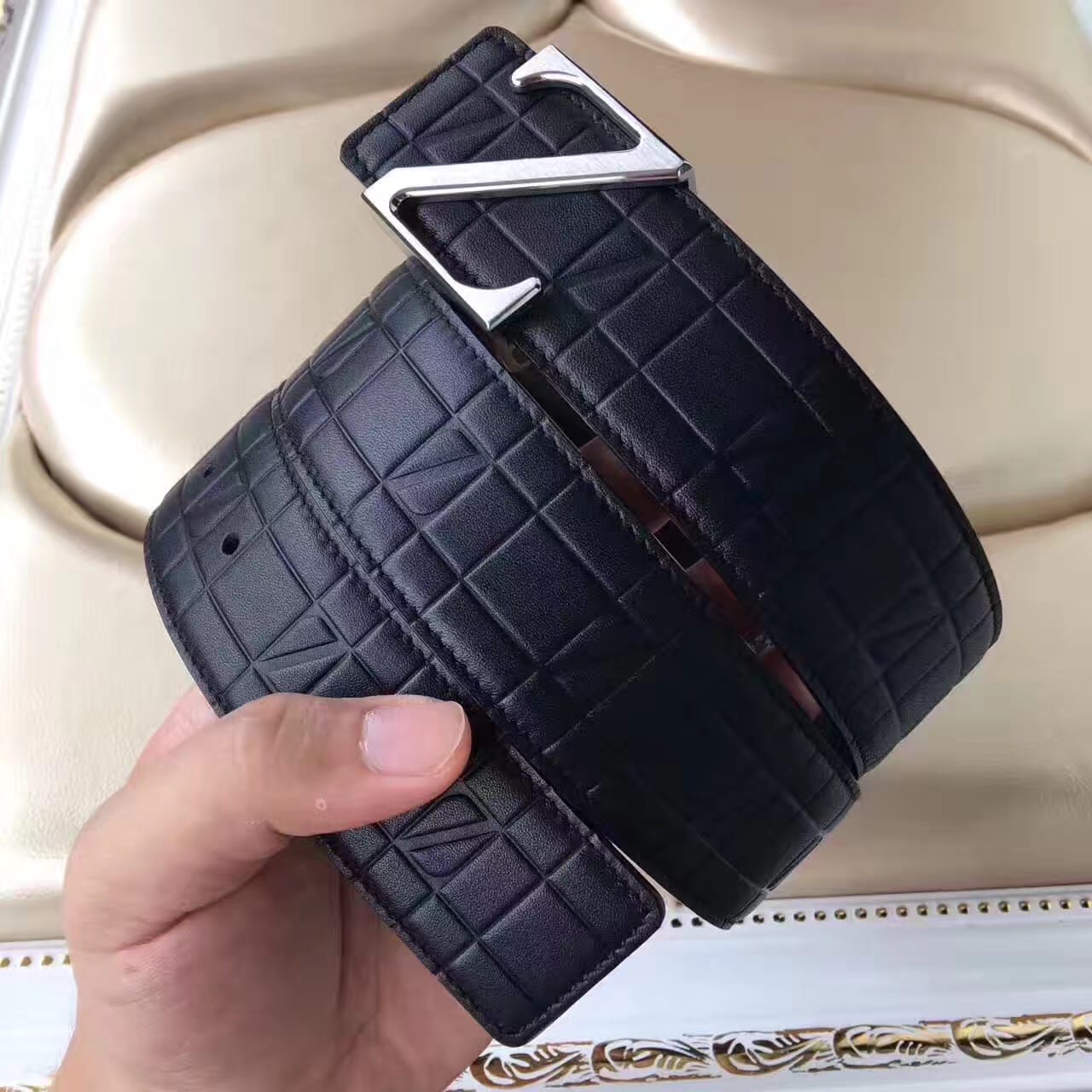 杰尼亚,原版品质,带身3.8cm宽,双面头层牛皮压花款,搭配精品钢扣,商务休闲可用。