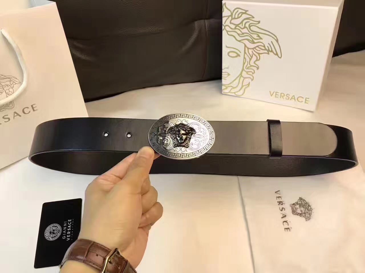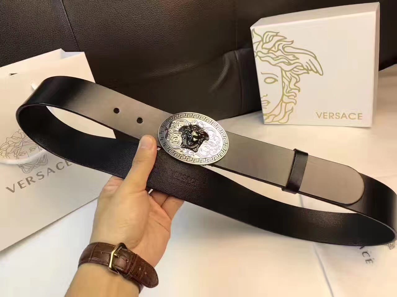 范思哲 Palazzo 系列小牛皮腰带 银色美杜莎纯钢五金挂扣
